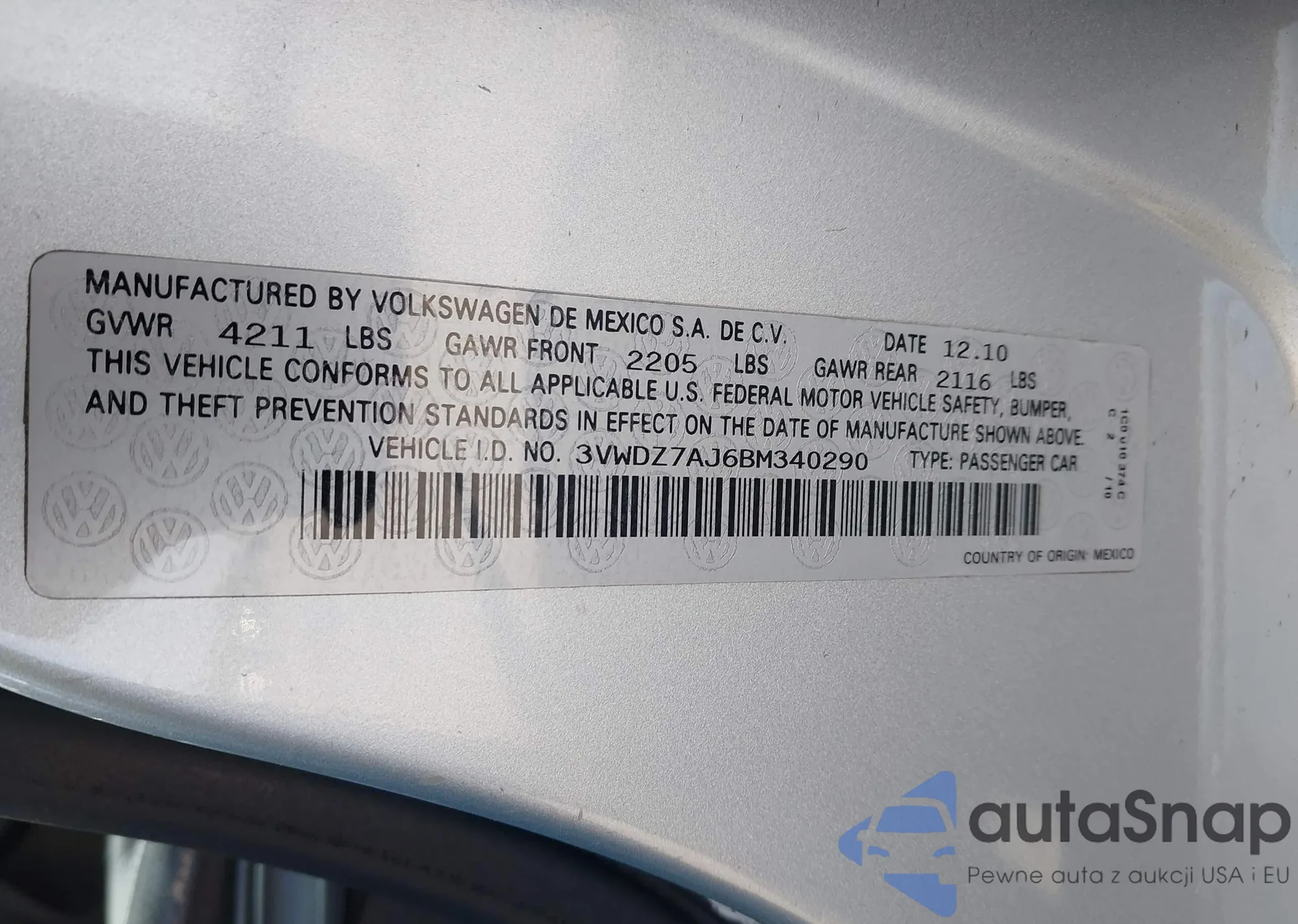 • VIN 1N4AL2AP3BC112236