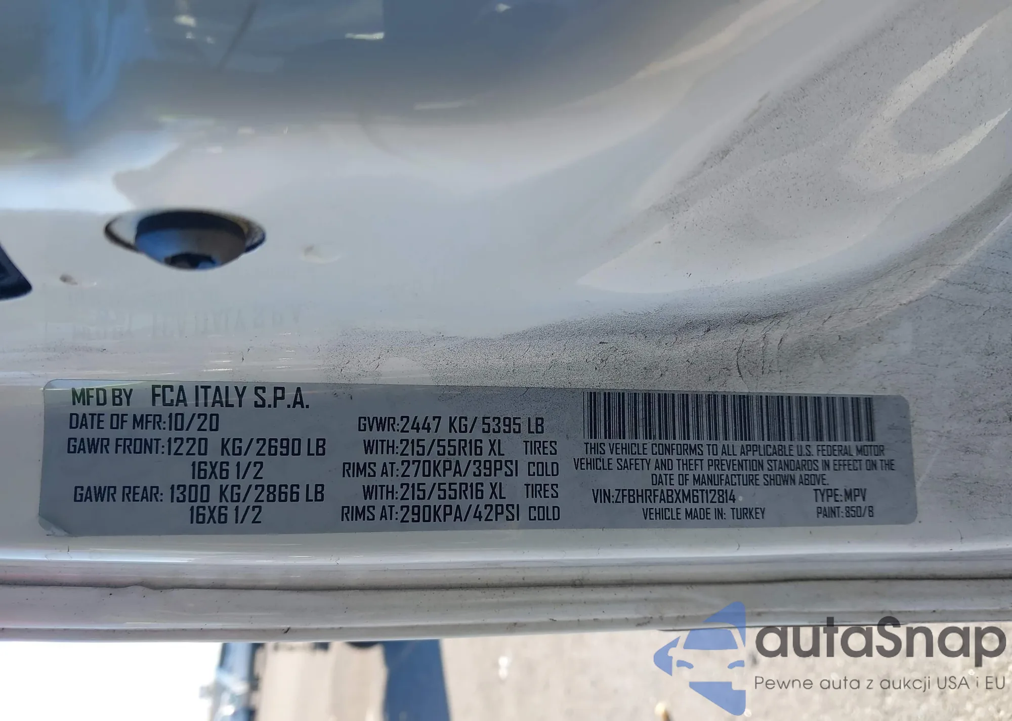 • VIN ZFBHRFABXM6T12814