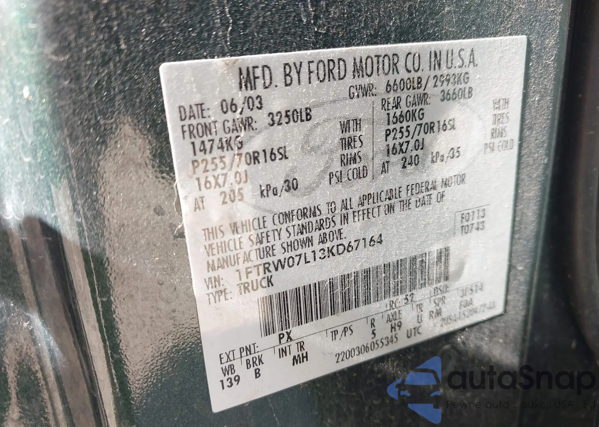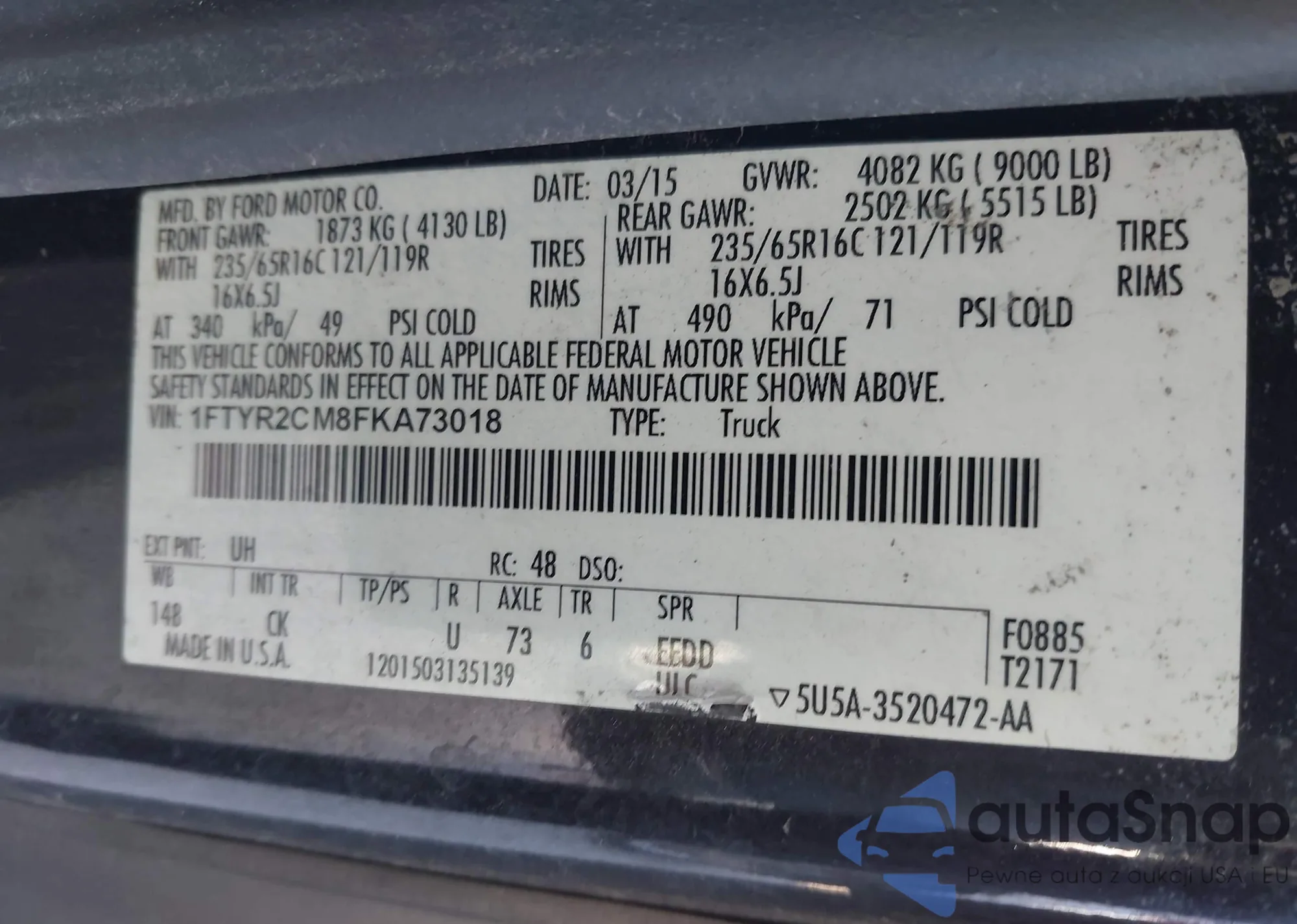 • VIN 1FTYR2CM8FKA73018