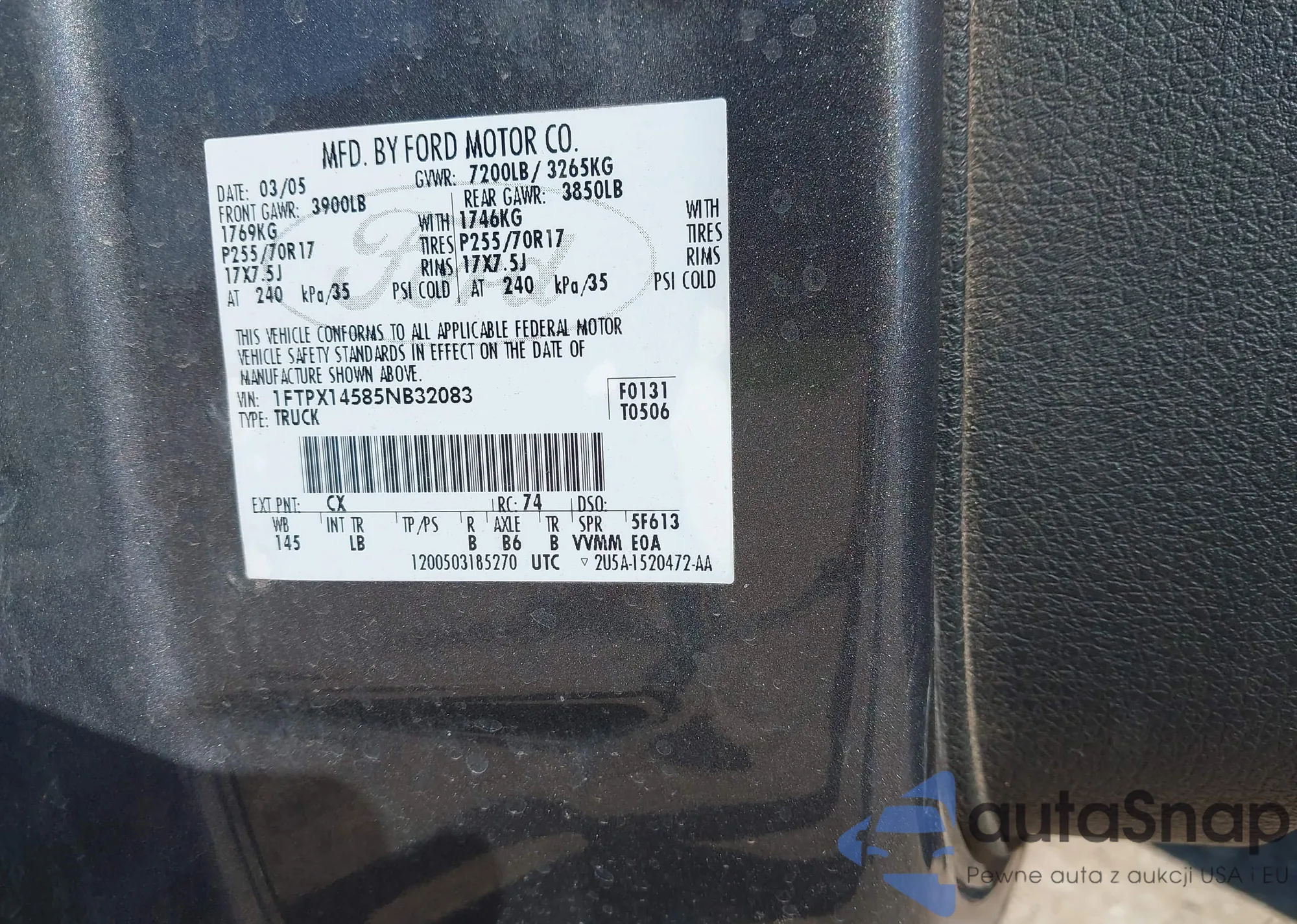 • VIN 1FTPX14585NB32083