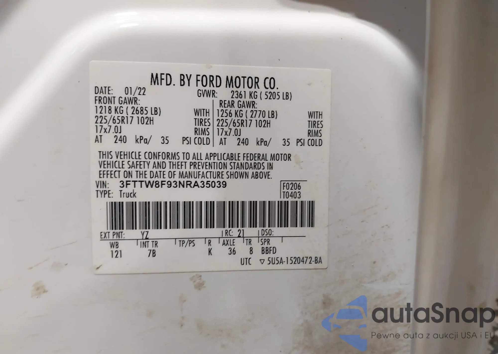 • VIN 3FTTW8F93NRA35039
