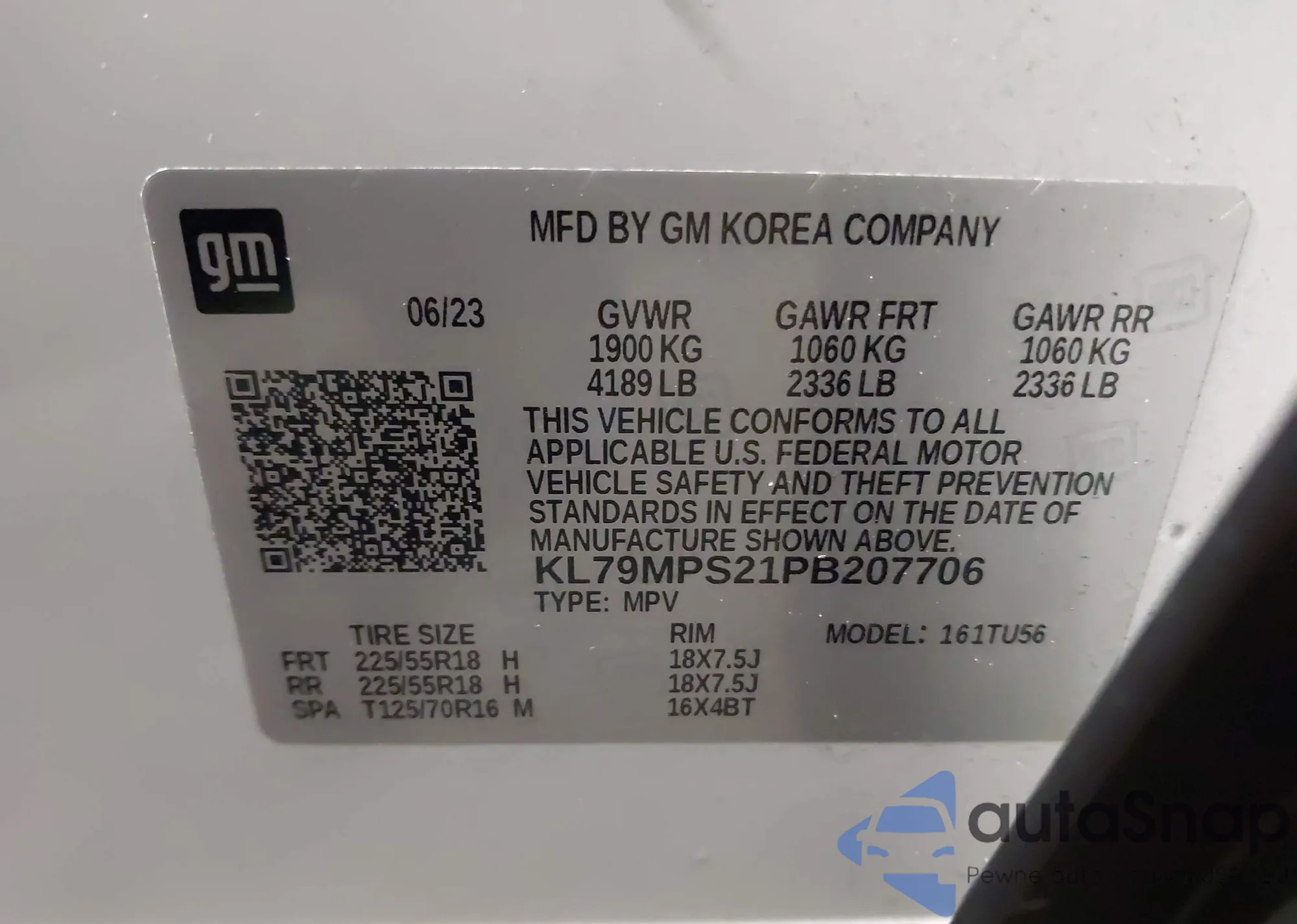 • VIN KL79MPS21PB207706