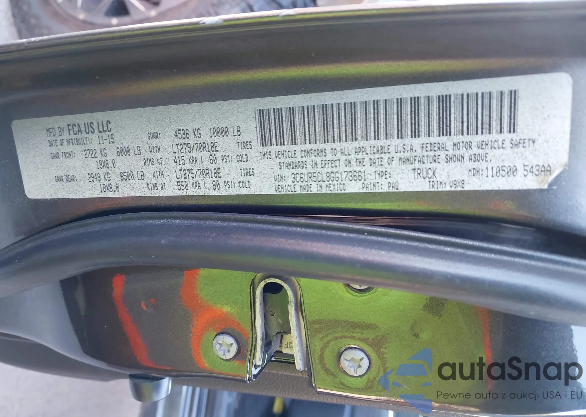 • VIN 3C6UR5CL8GG173661