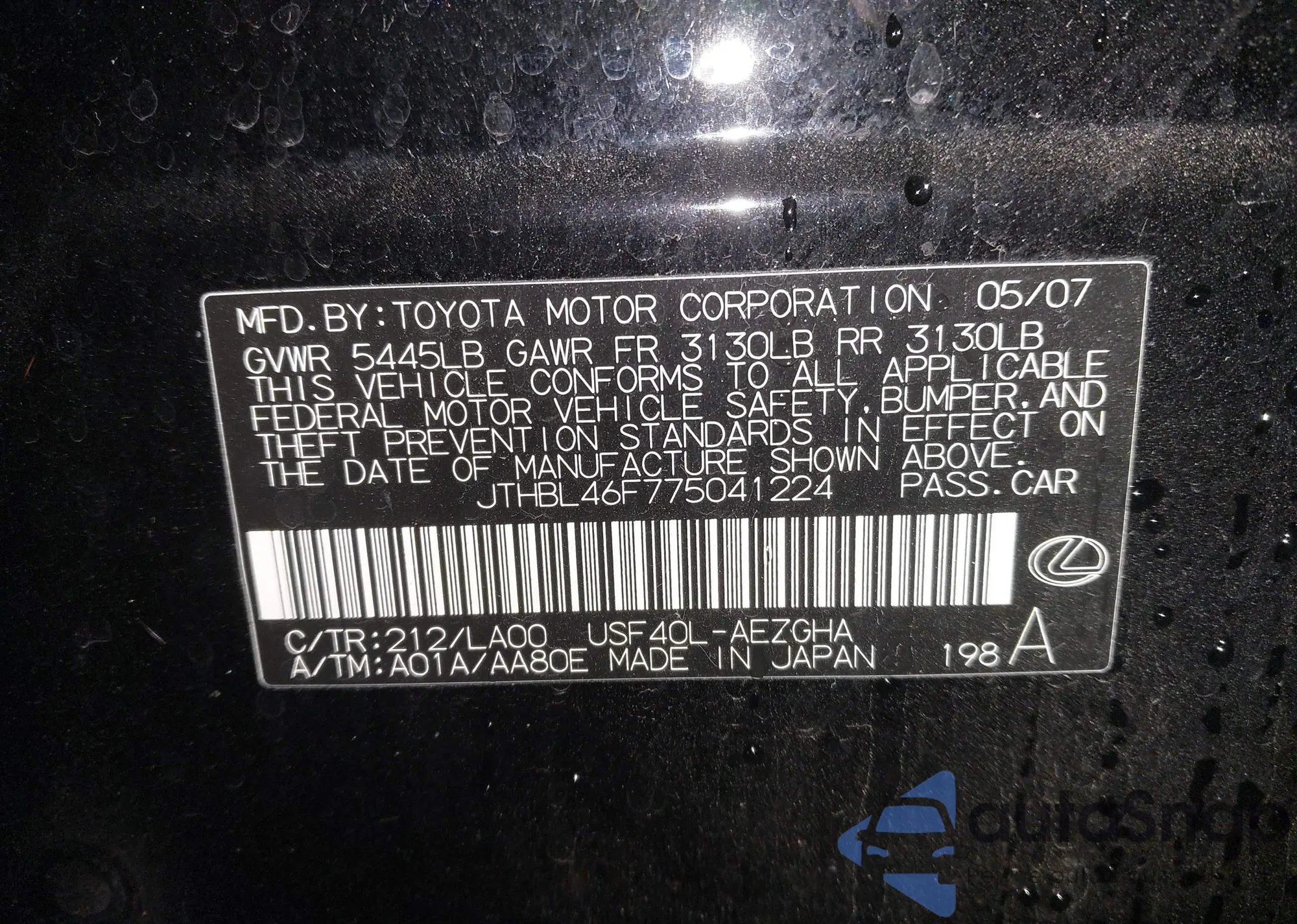 • VIN JTHBL46F775041224