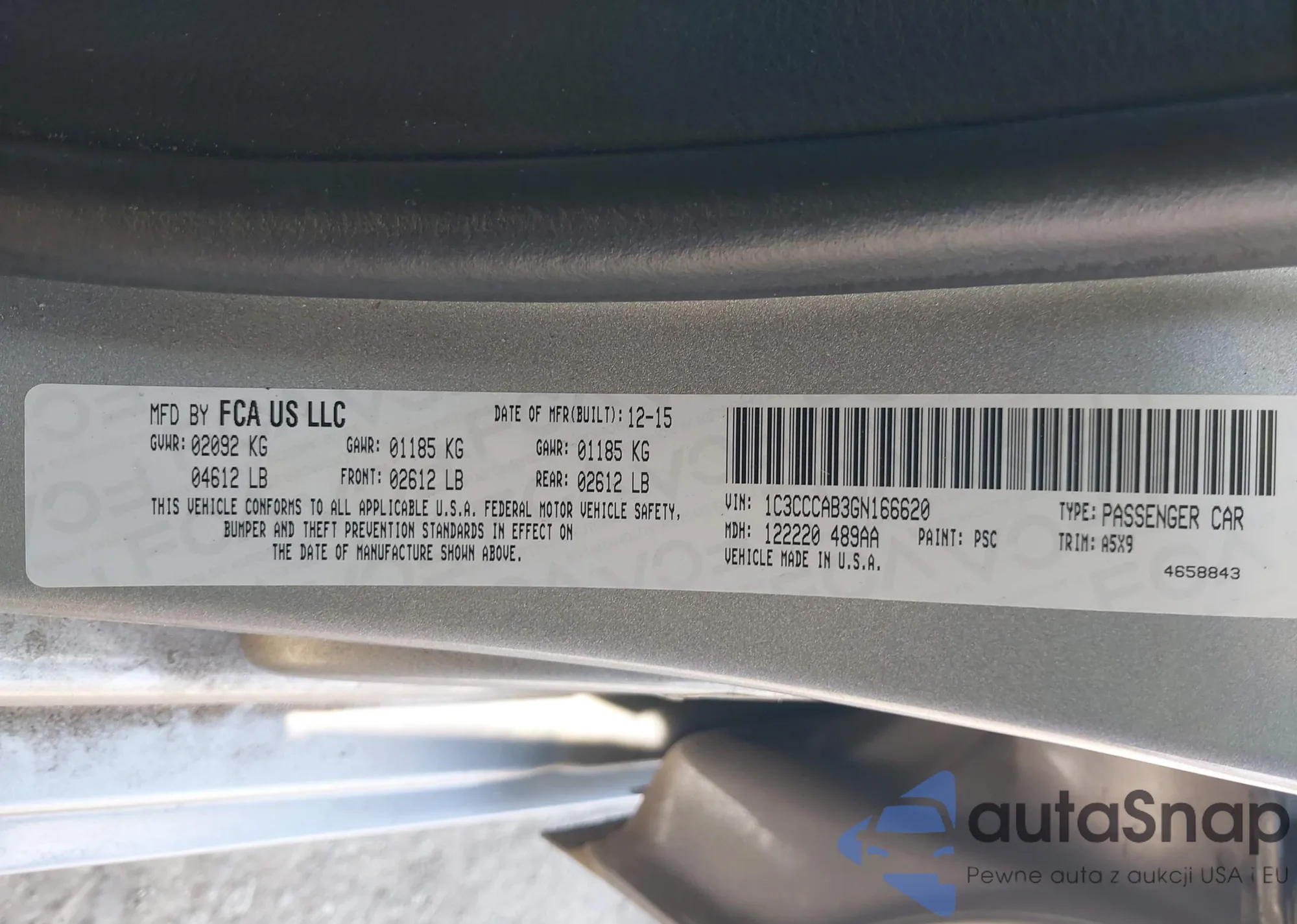 LOT: 43493322 VIN: 1C3CCCAB3GN166620