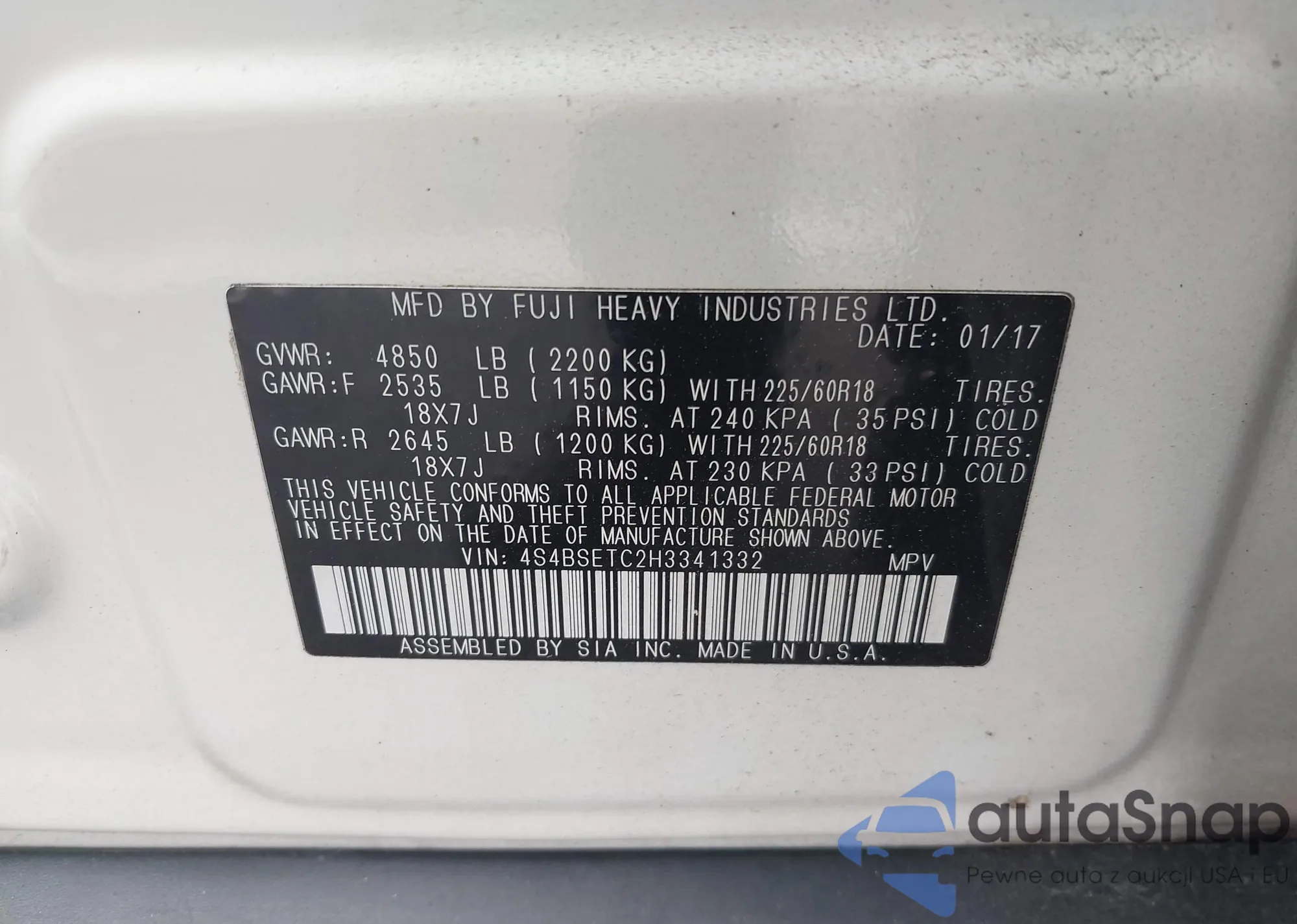 • VIN 4S4BSETC2H3341332