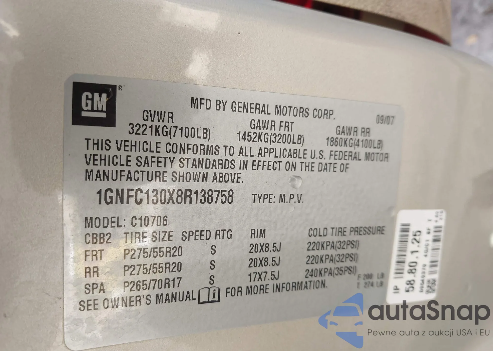 LOT: 43207320 VIN: JM3KFBCM4R0366713