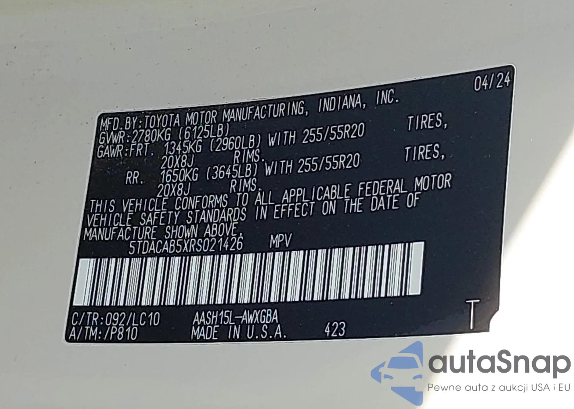 • VIN 5XYP64HC7LG073867