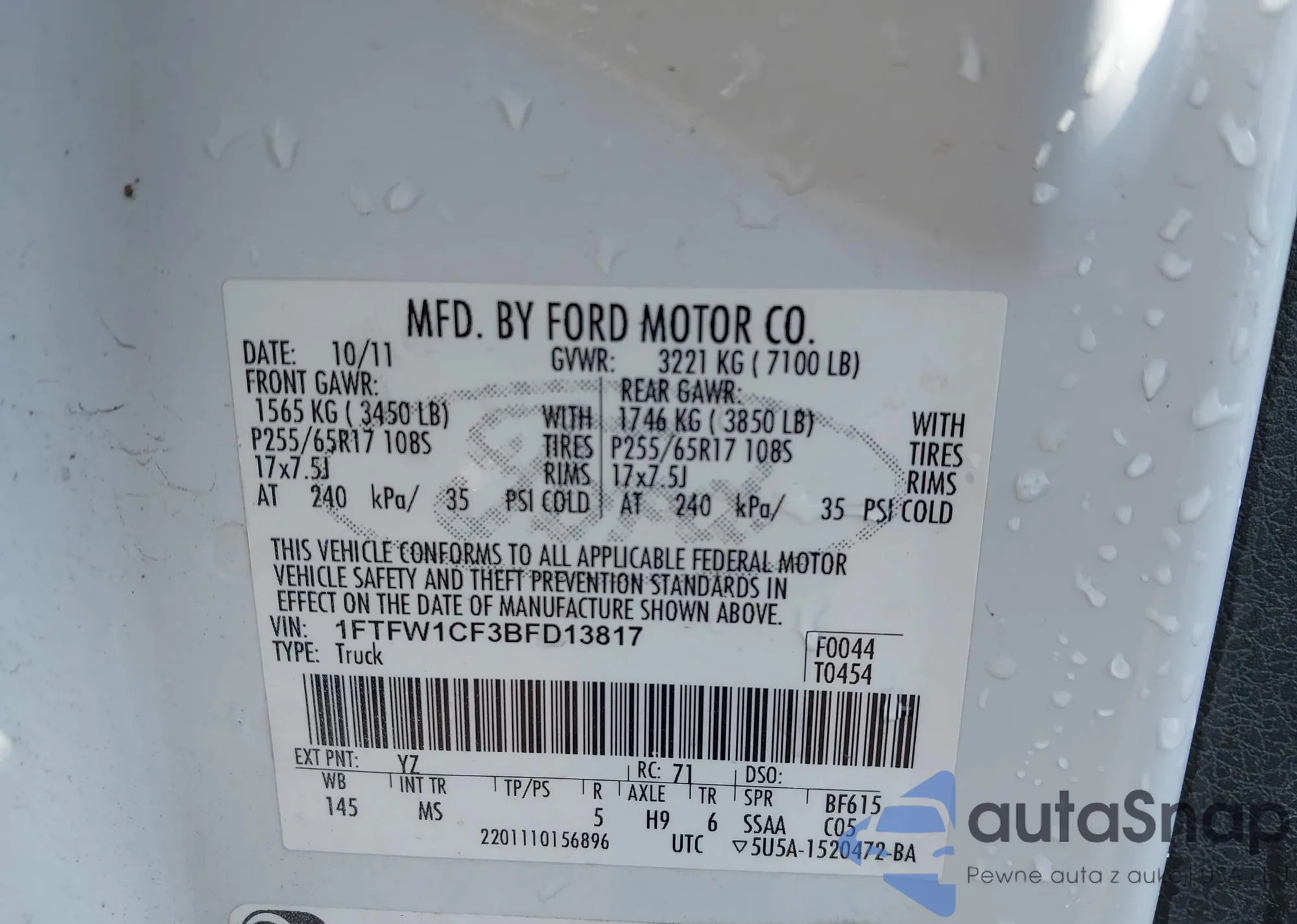 • VIN 1FTFW1CF3BFD13817