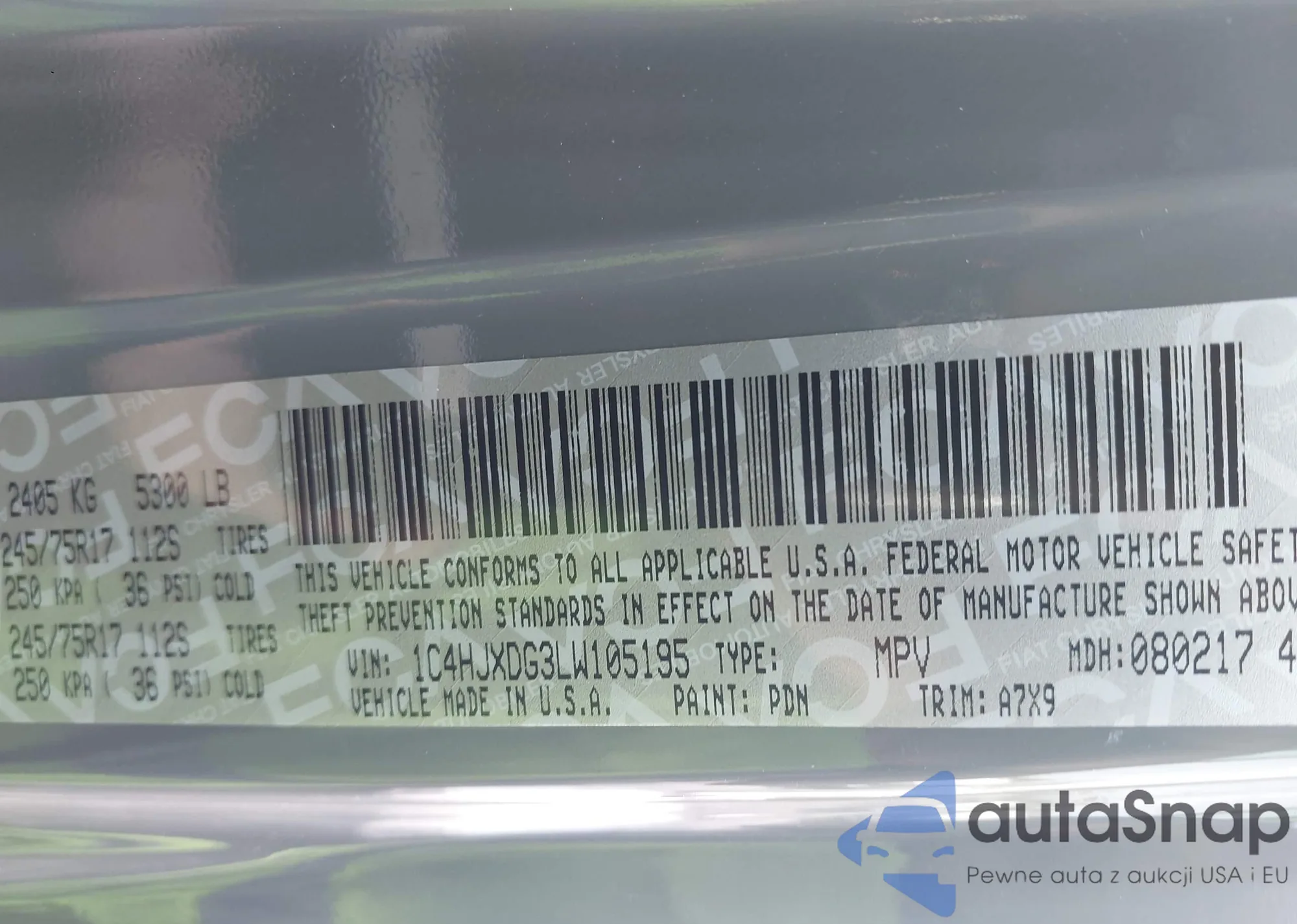 • VIN 1C4HJXDG3LW105195