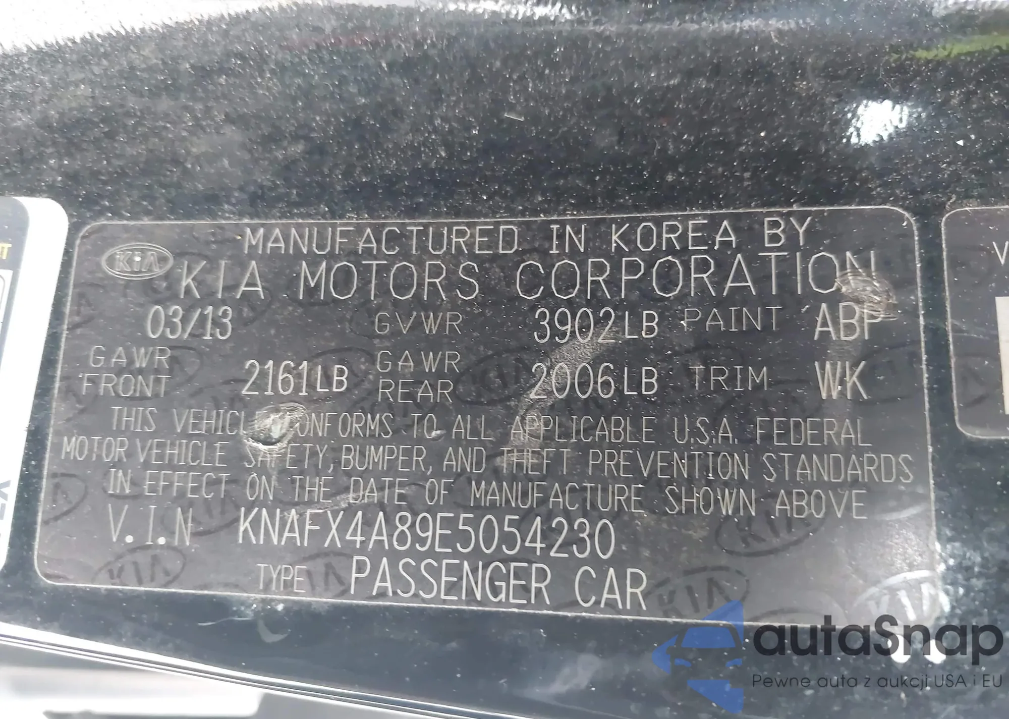 LOT: 43912091 VIN: KNAFX4A89E5054230