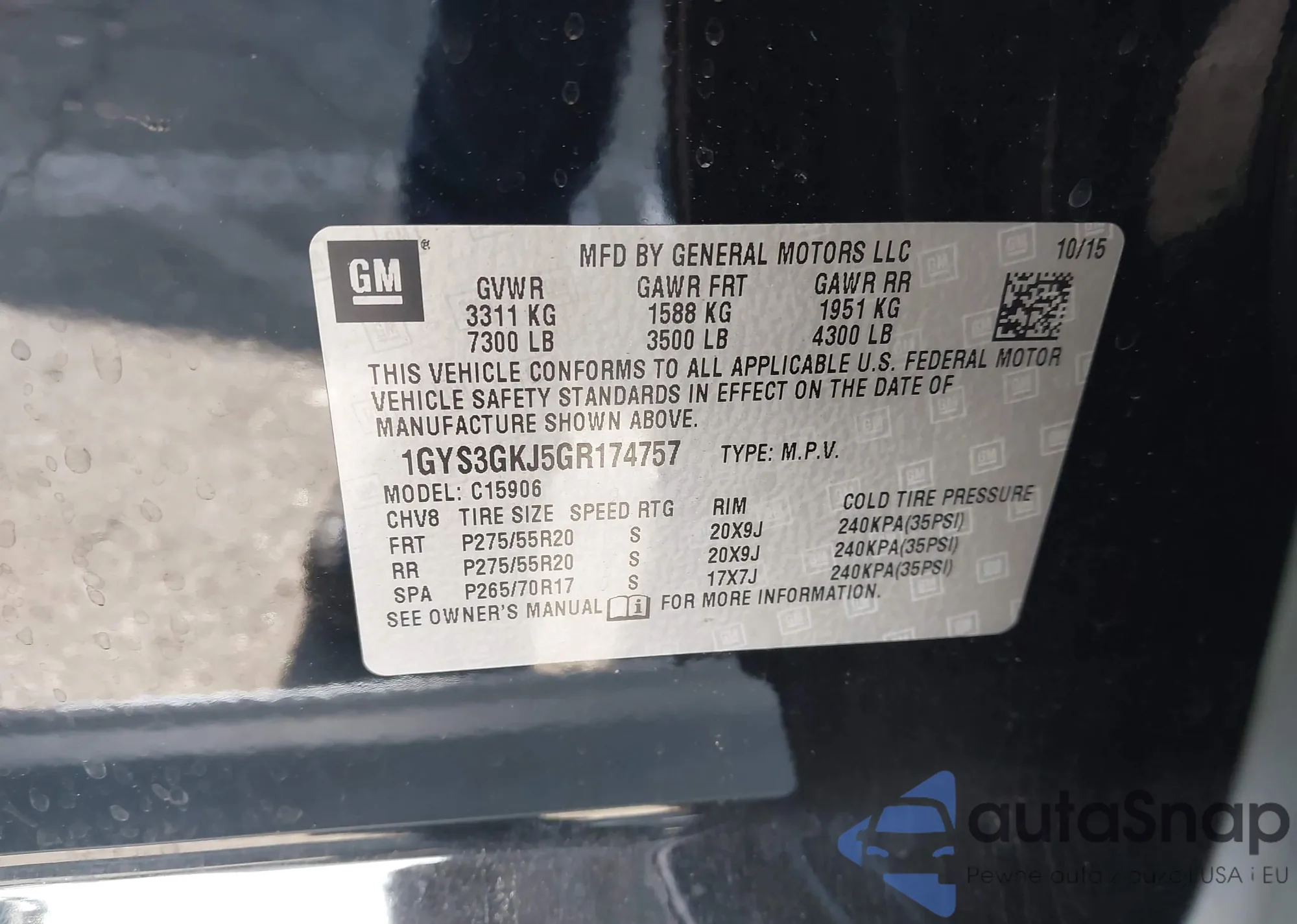 LOT: 43917678 VIN: 1GYS3GKJ5GR174757
