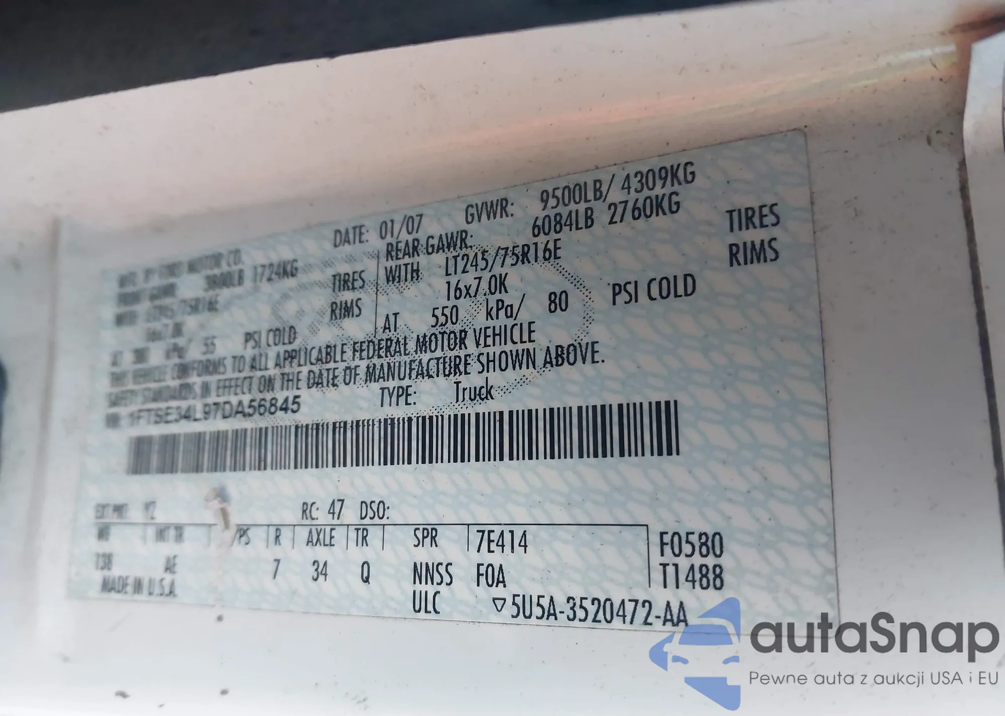 LOT: 43925303 VIN: 1FTSE34L97DA56845