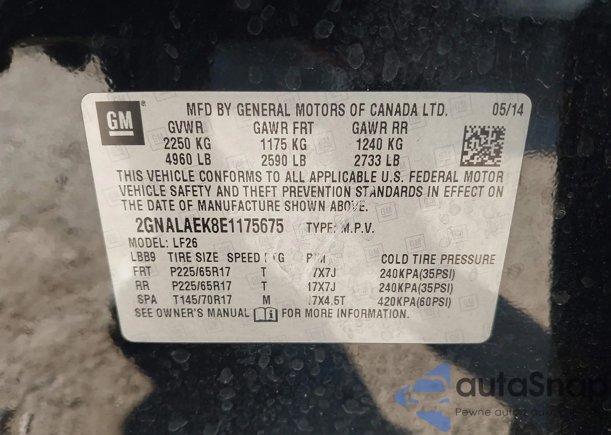 LOT: 43887252 VIN: 2GNALAEK8E1175675