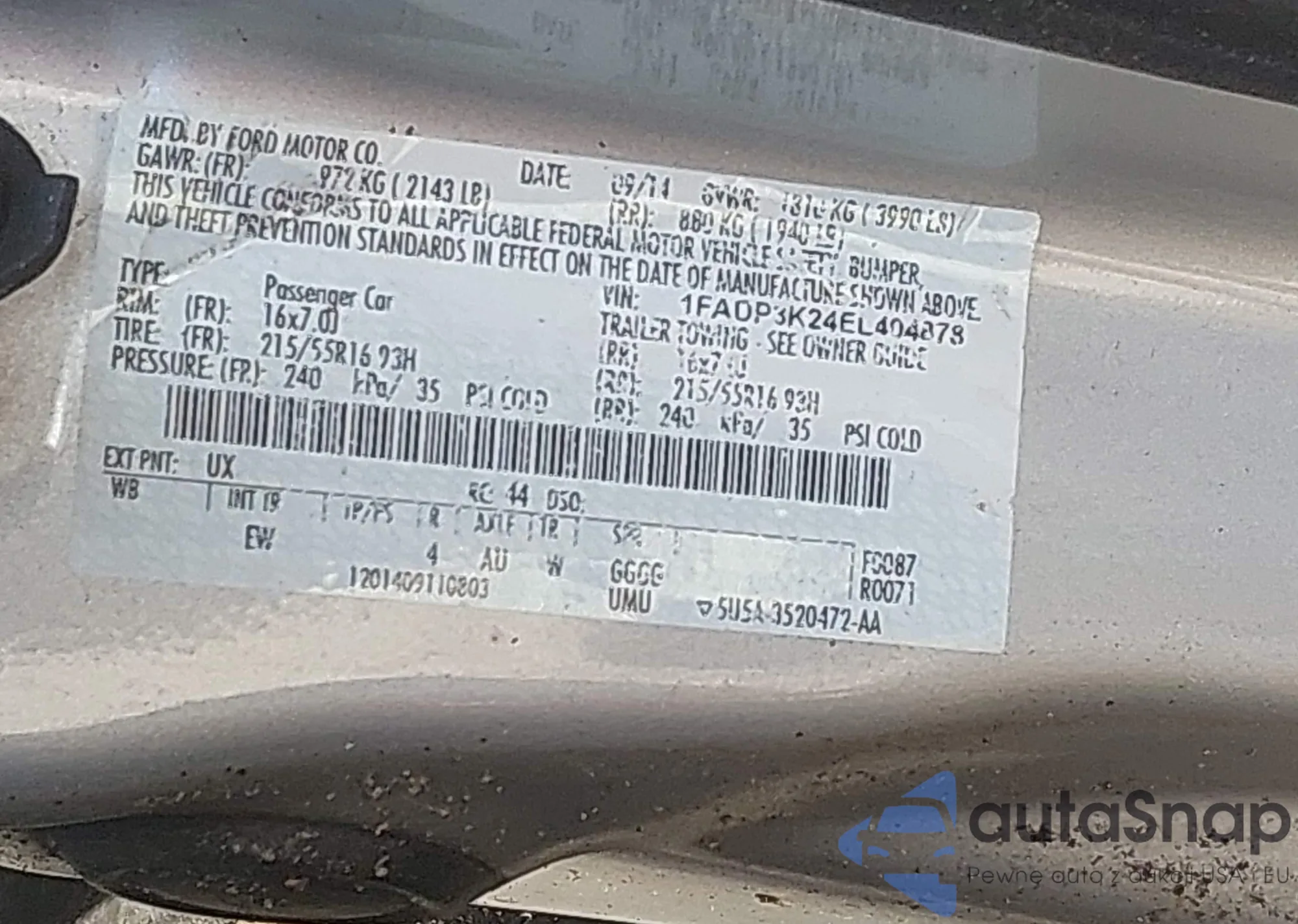 • VIN 1FADP3K24EL404878
