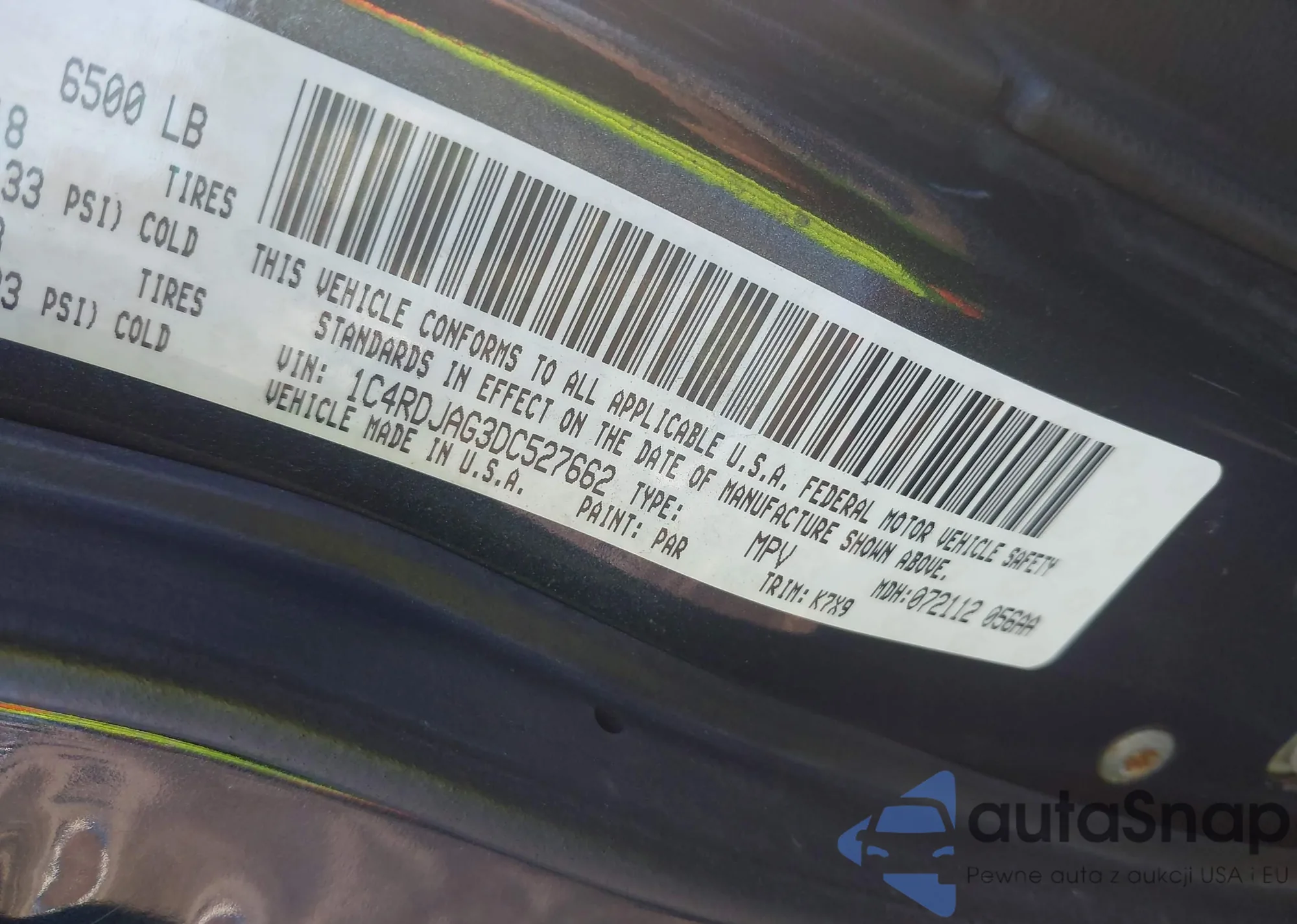 • VIN 1C4RDJAG3DC527662
