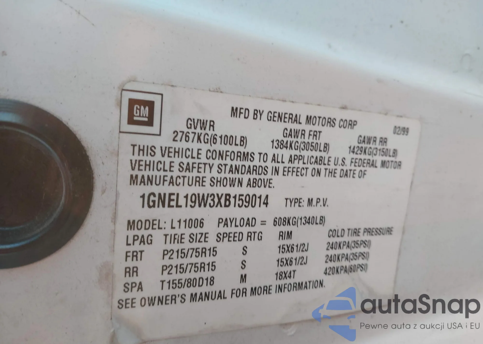 LOT: 43777502 VIN: 3GNCJLSB0FL167763