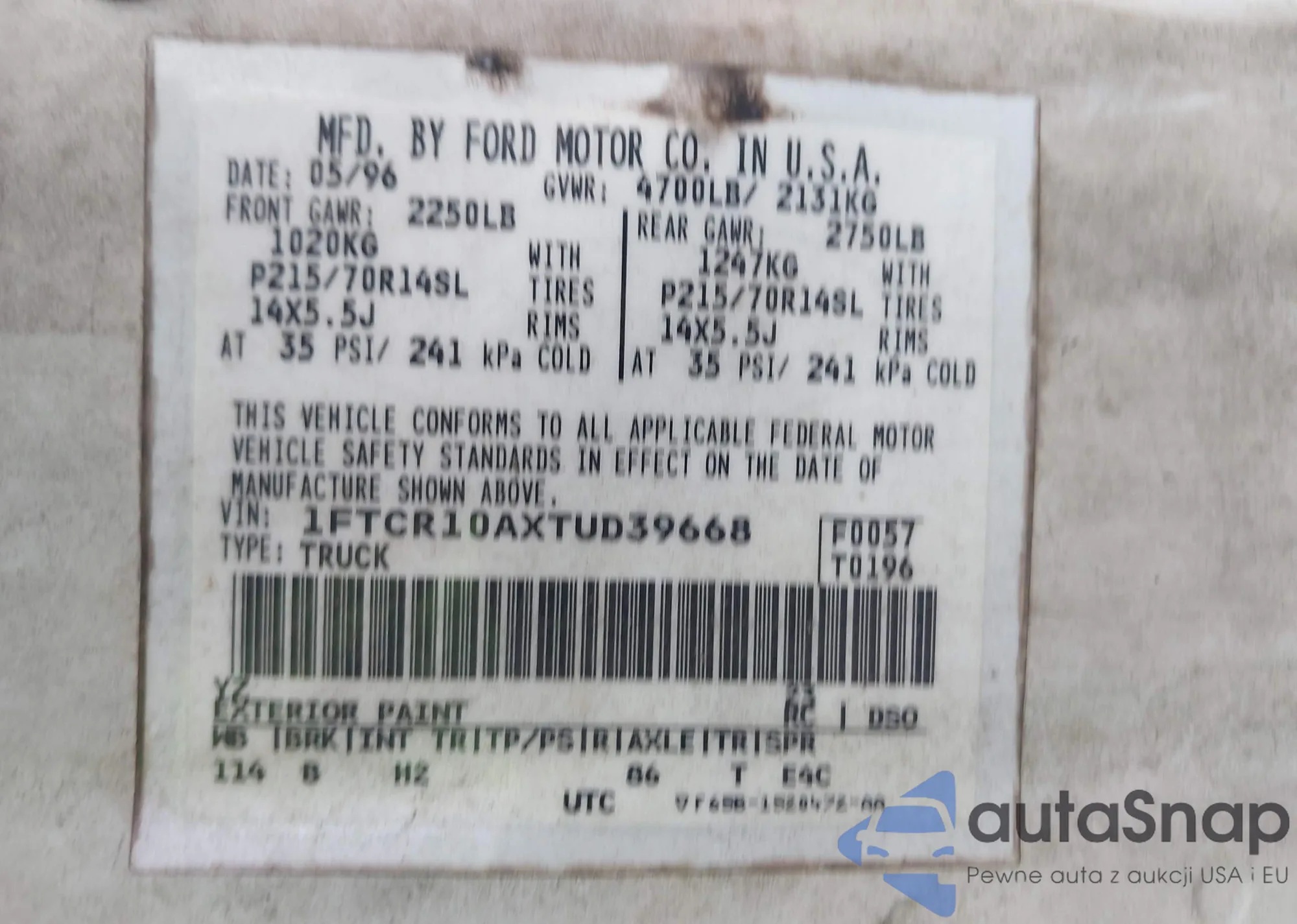 • VIN 1FTCR10AXTUD39668
