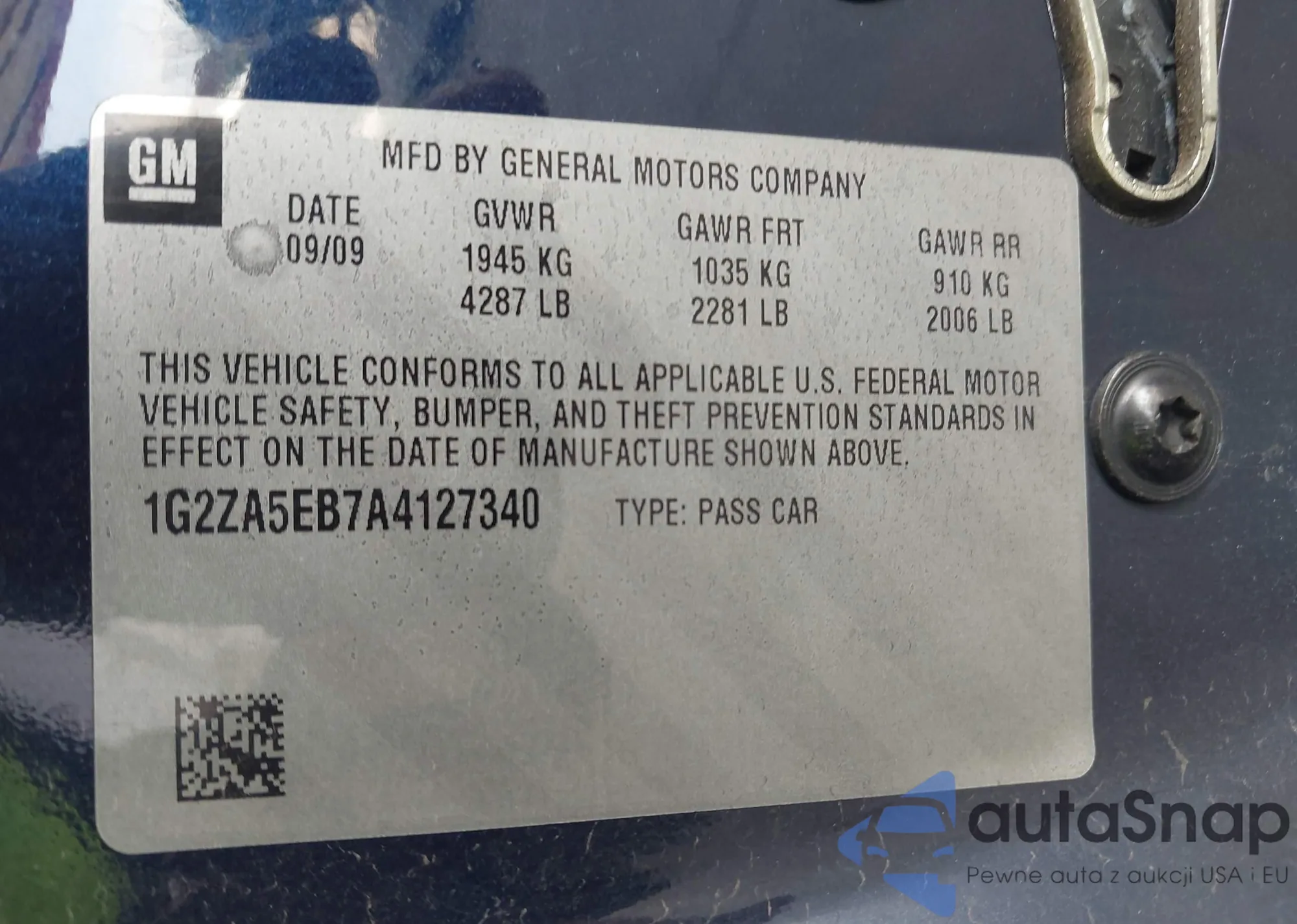 LOT: 43861207 VIN: 1G2ZA5EB7A4127340