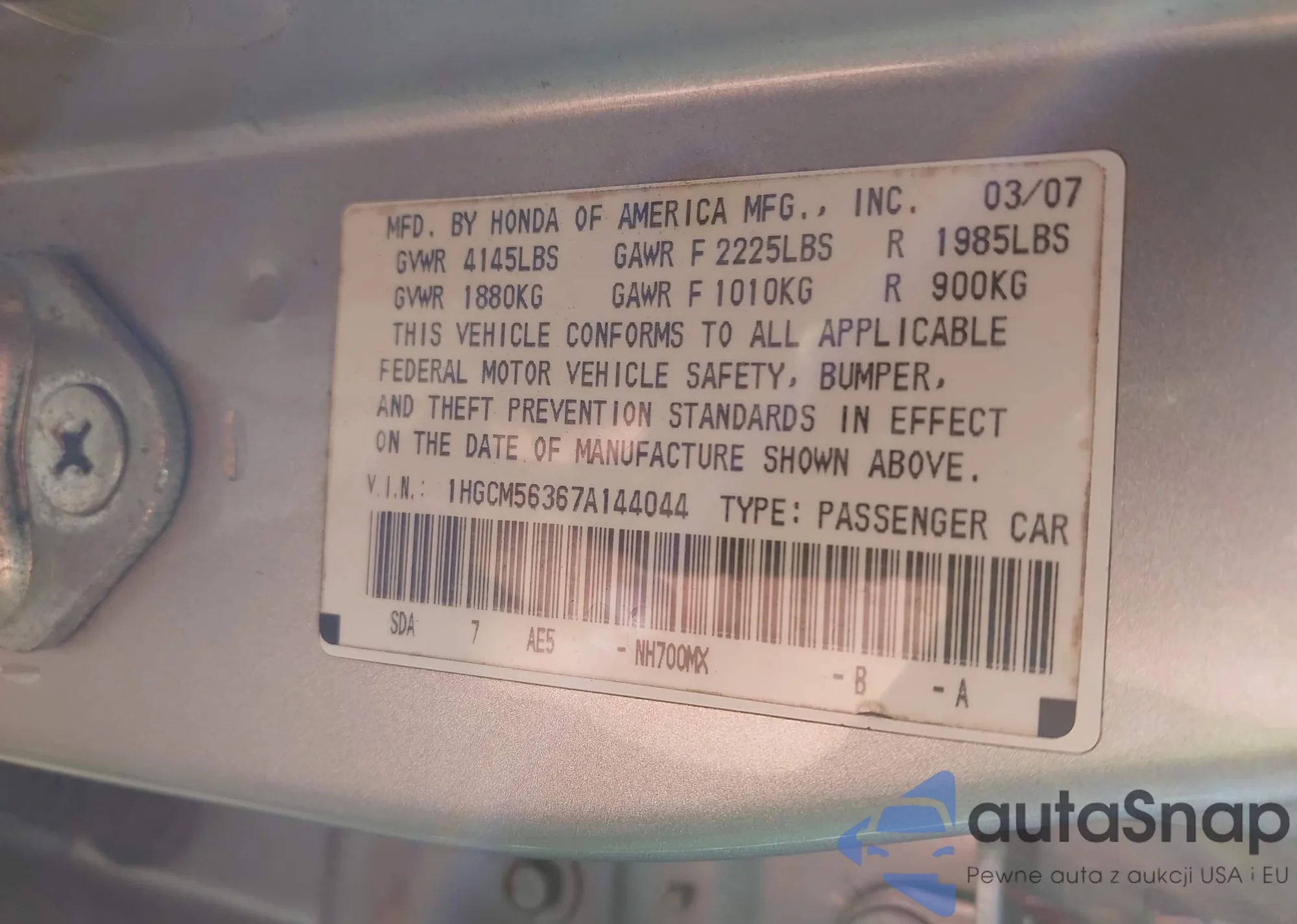 • VIN 5J6YH28513L029012