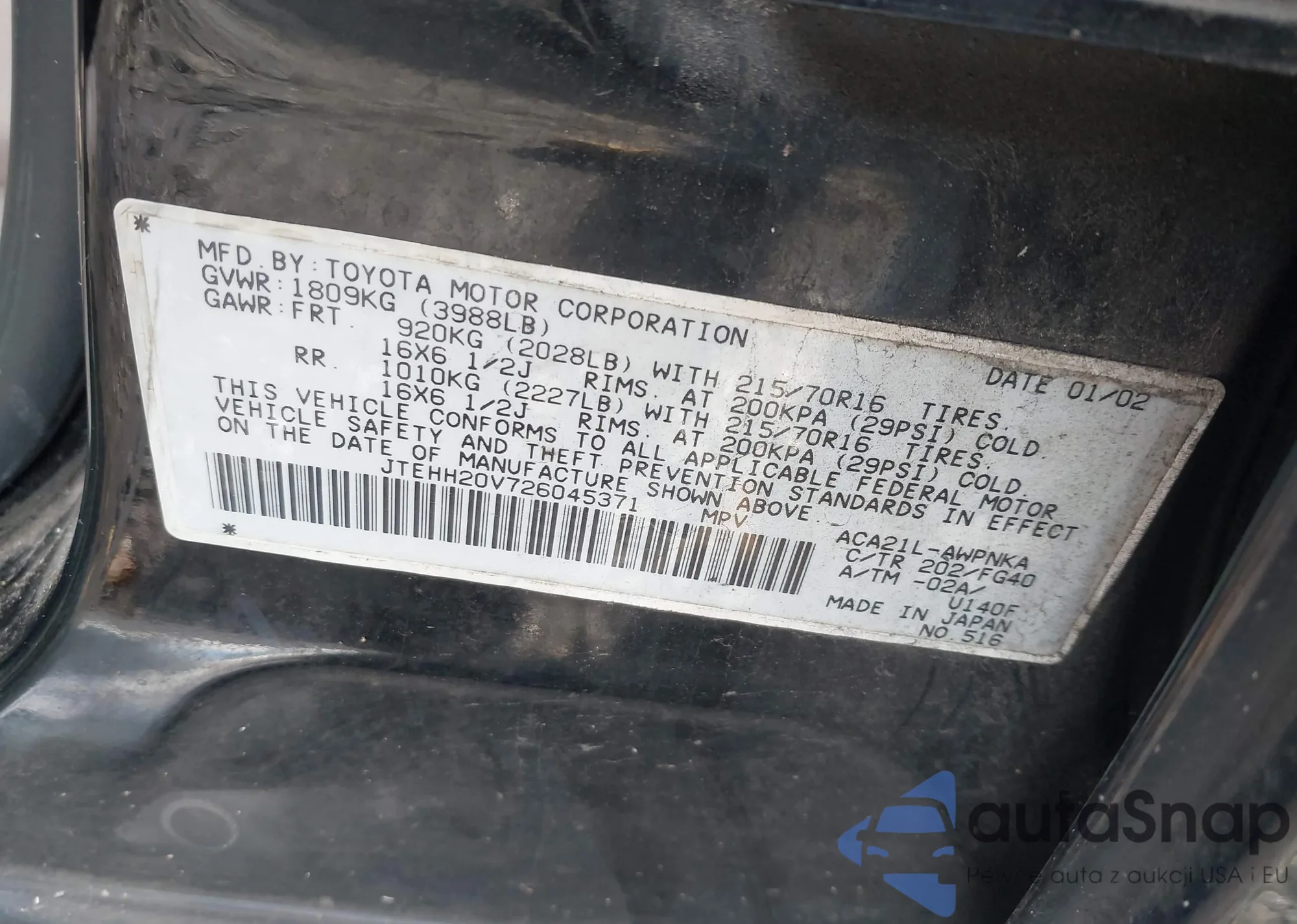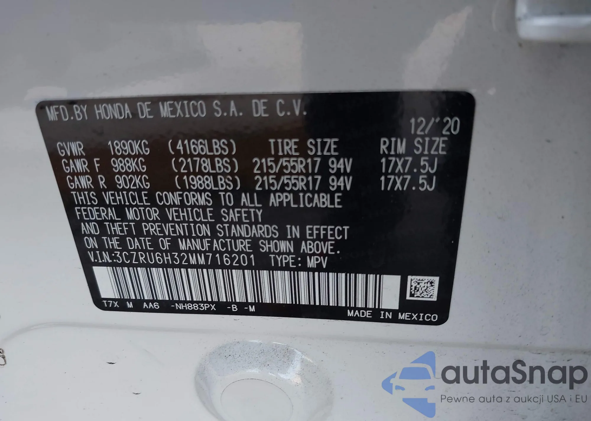 • VIN 3CZRU6H32MM716201