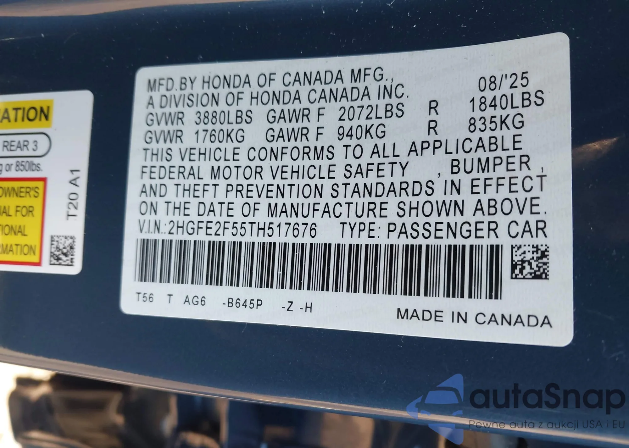 • VIN 2HGFE2F52TH528361