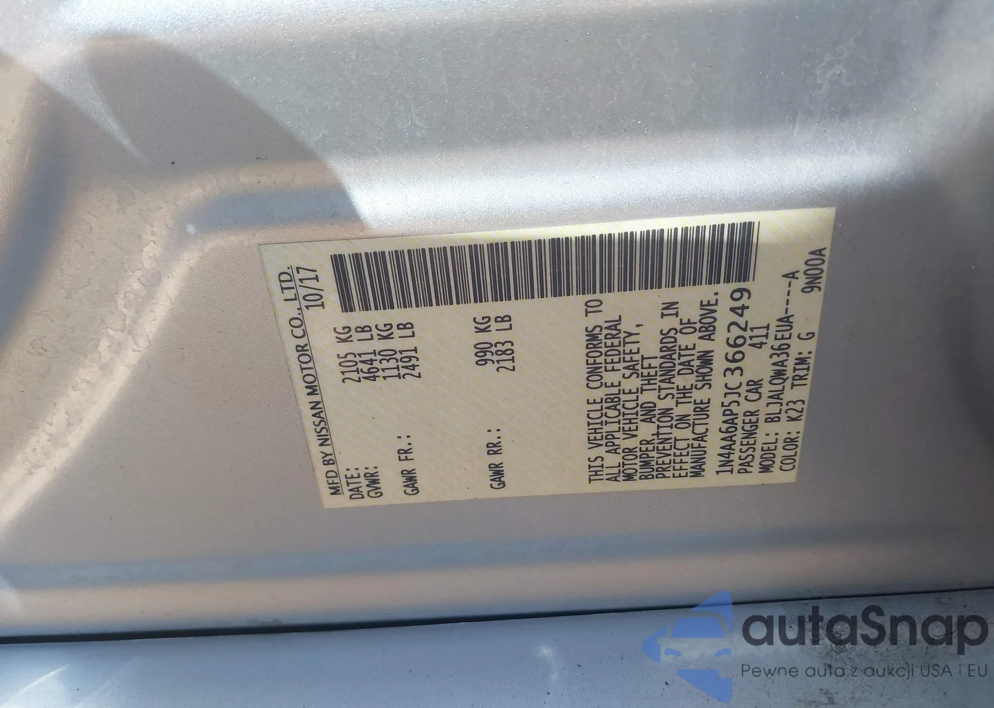 • VIN 1N4AA6AP5JC366249