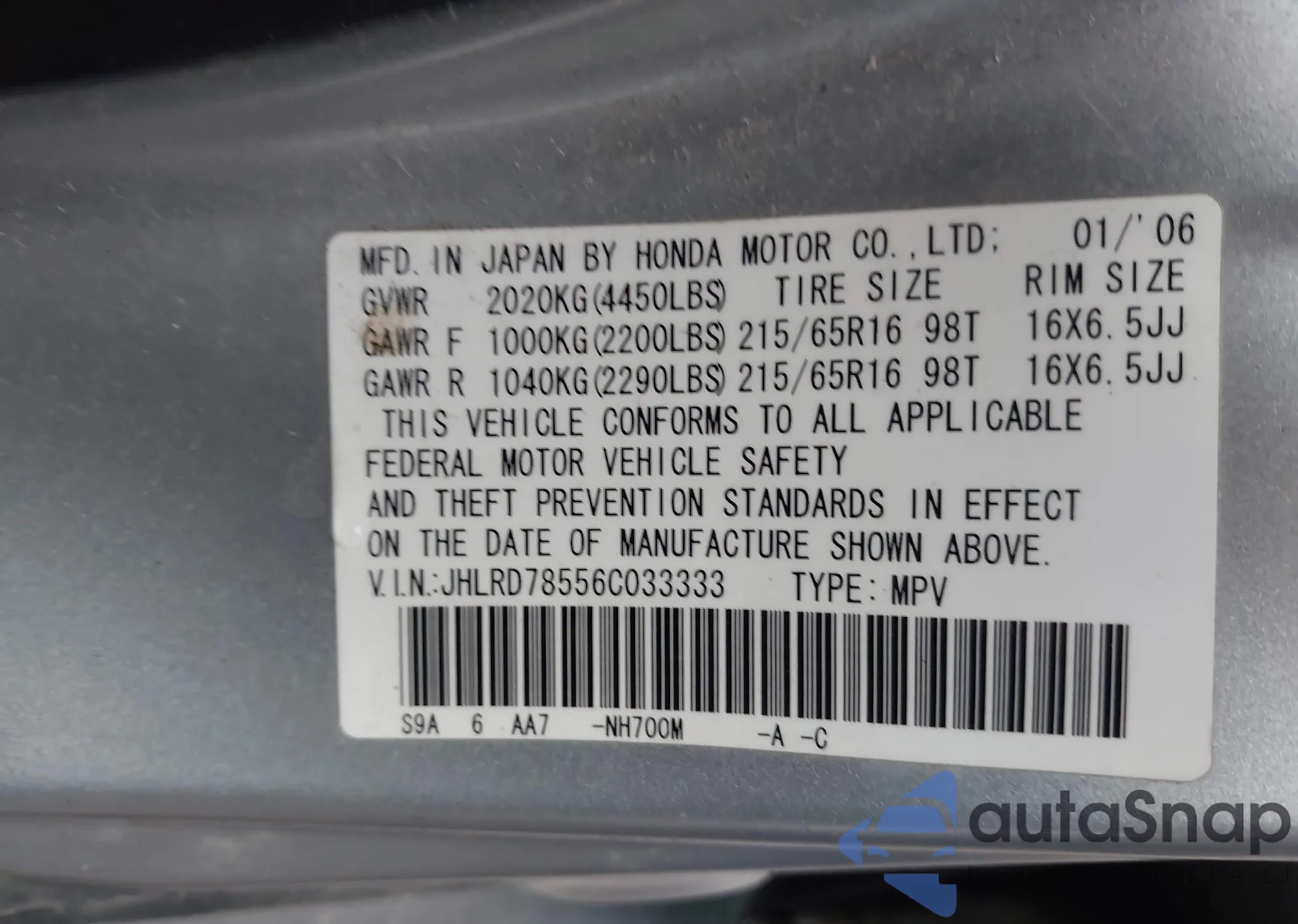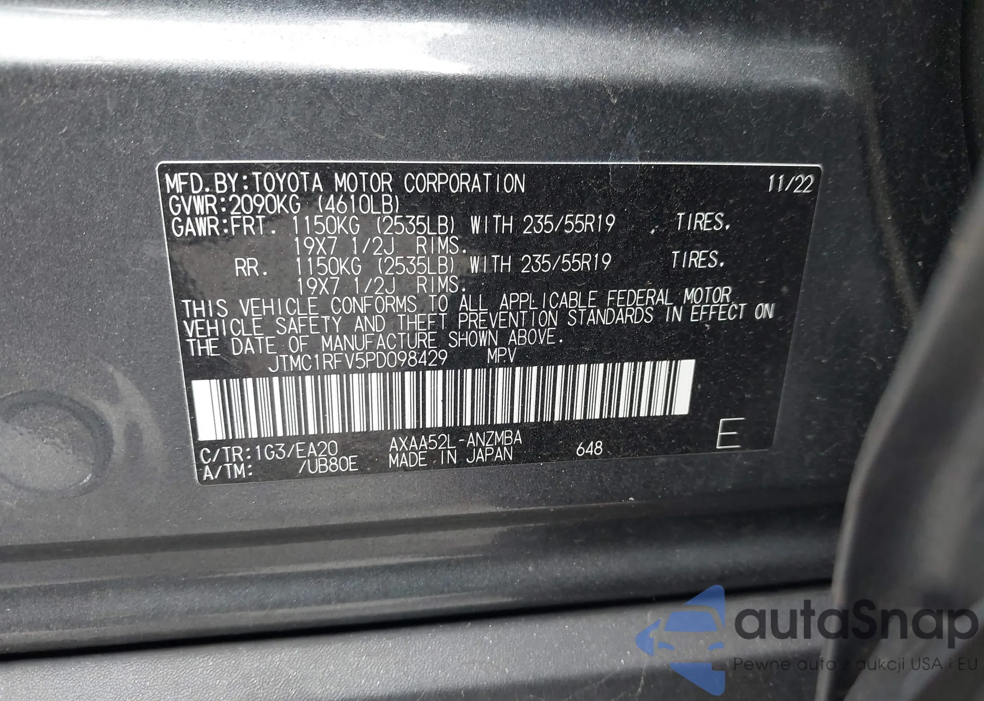 • VIN JTMC1RFV5PD098429