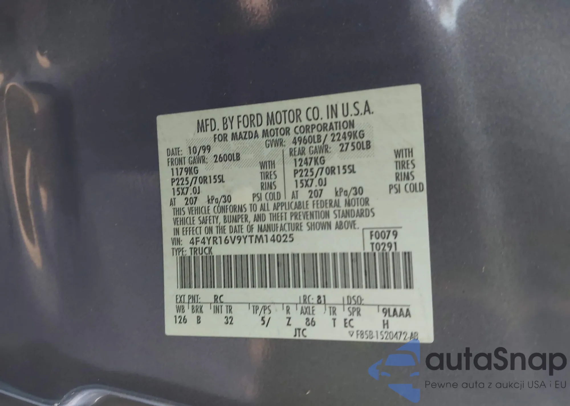 • VIN 4F4YR16V9YTM14025