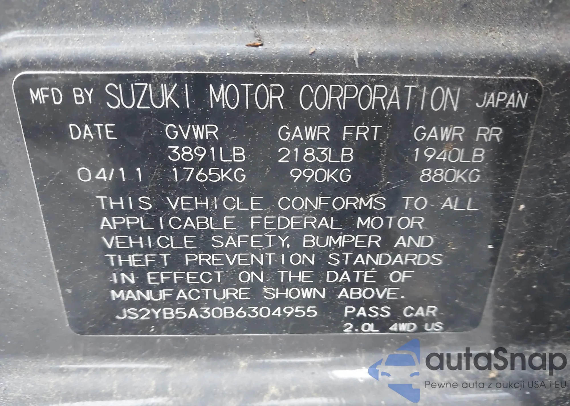 • VIN JS2YB5A30B6304955