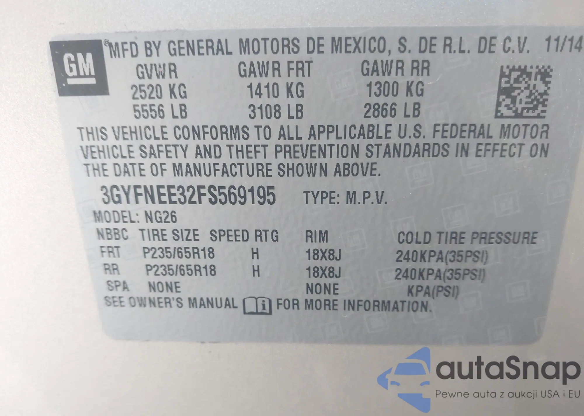 LOT: 43606038 VIN: 3GYFNEE32FS569195
