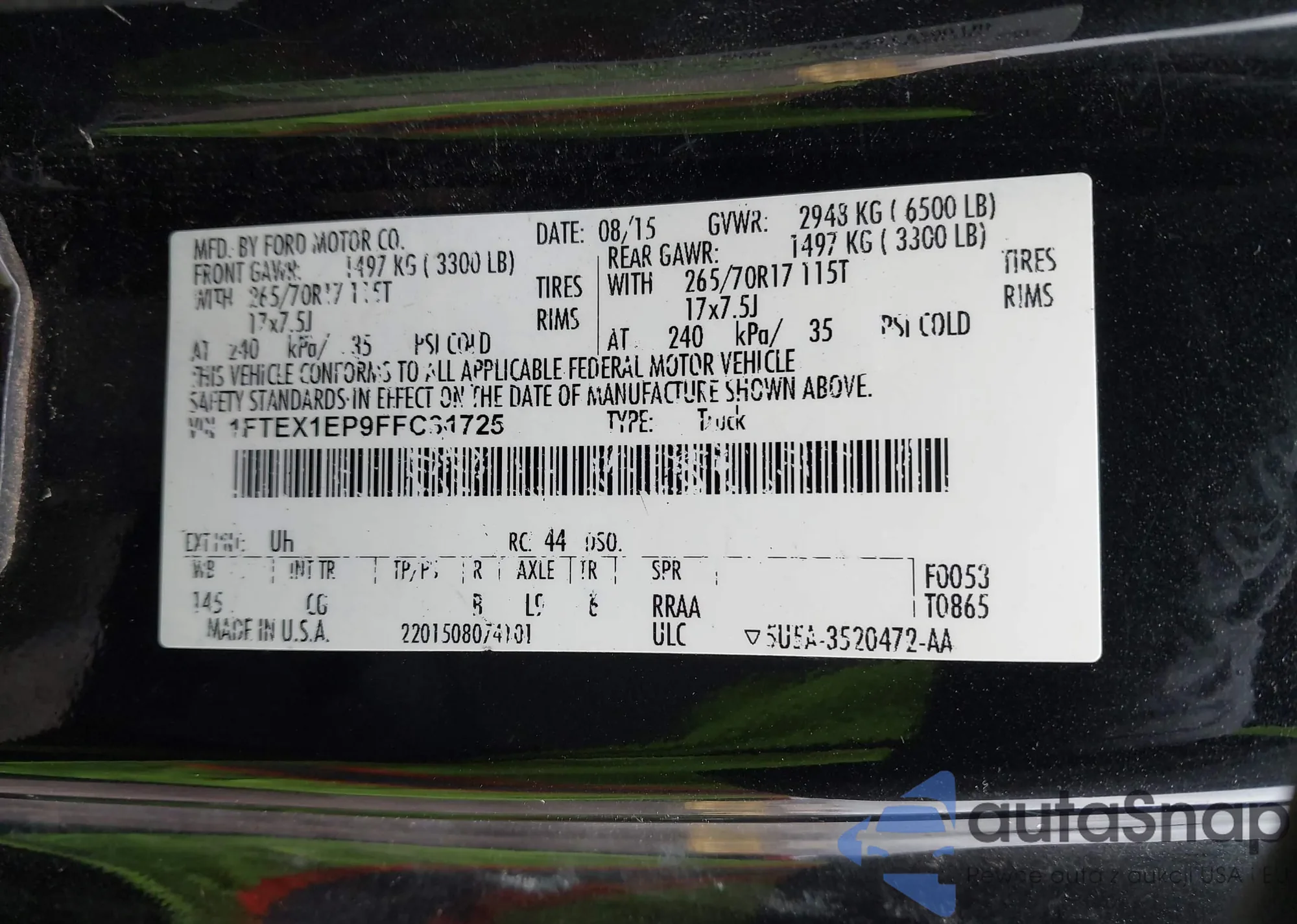 • VIN 1FTEX1EP9FFC31725
