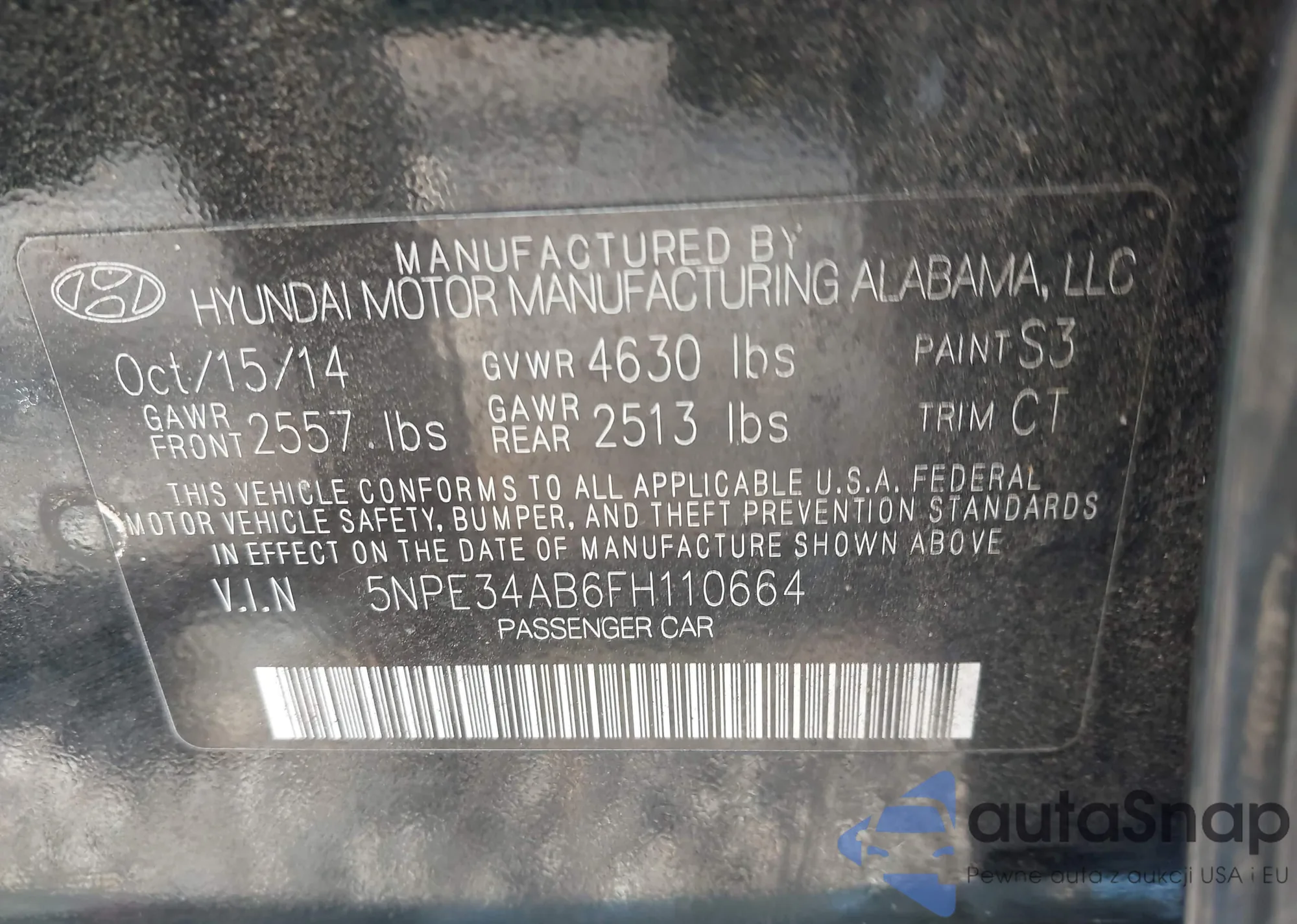 • VIN 5NPE34AB6FH110664