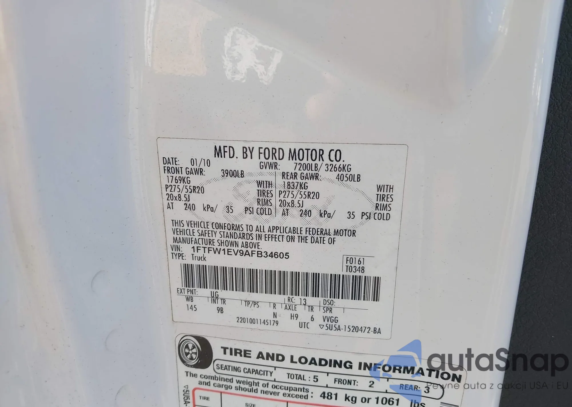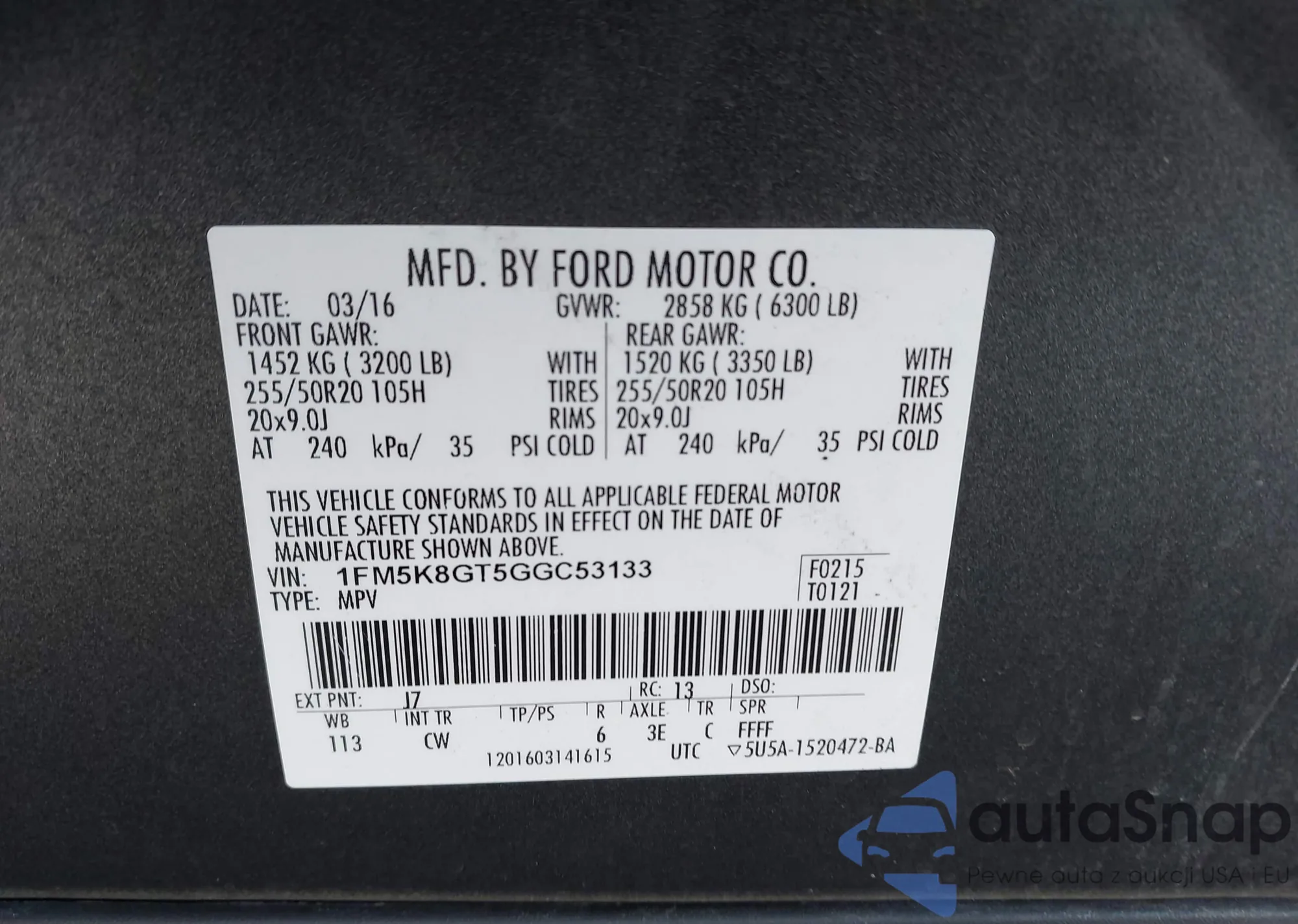 LOT: 43478191 VIN: 1FADP5AU4FL105195