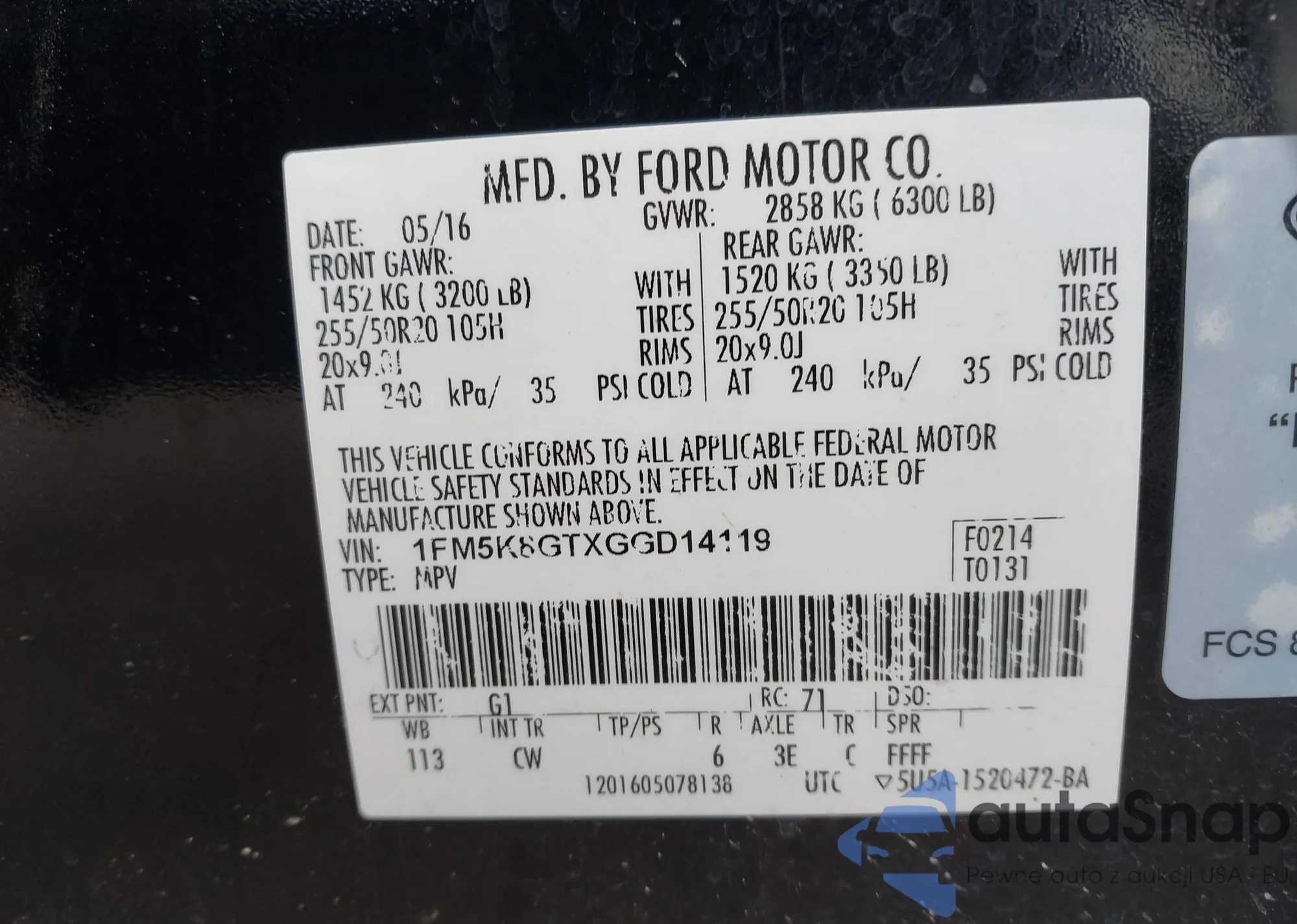 • VIN 1FM5K8GTXGGD14119