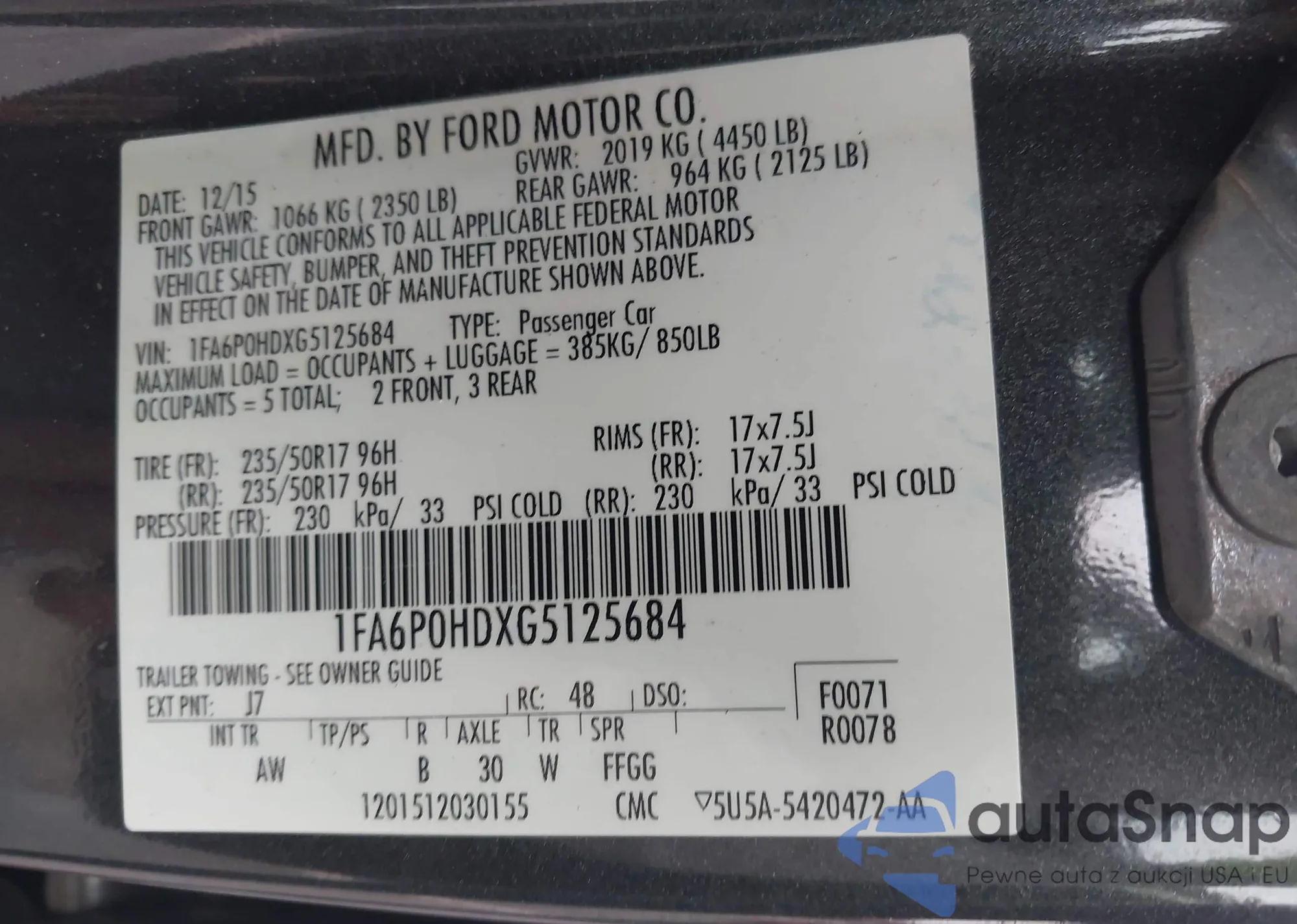 LOT: 43382441 VIN: 1FMCU0F7XJUA50559