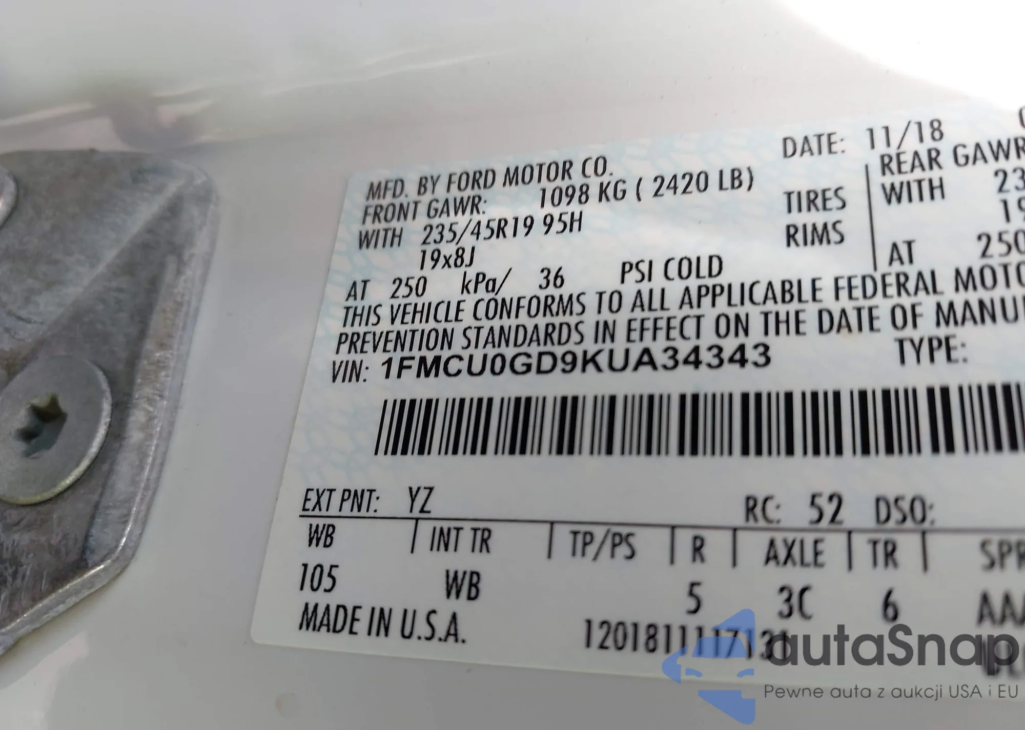 • VIN 1FMCU0GD9KUA34343
