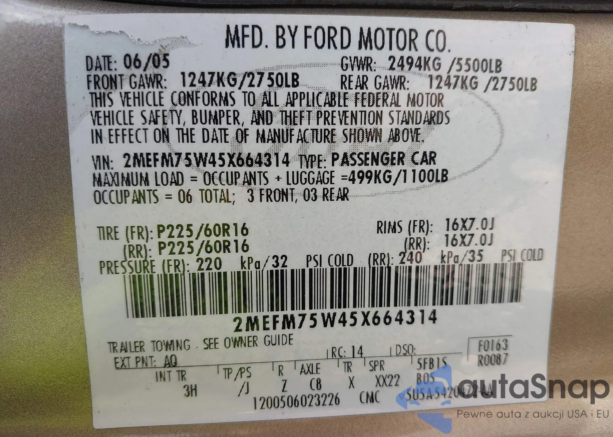 LOT: 43859333 VIN: 5TDZA22C65S361633