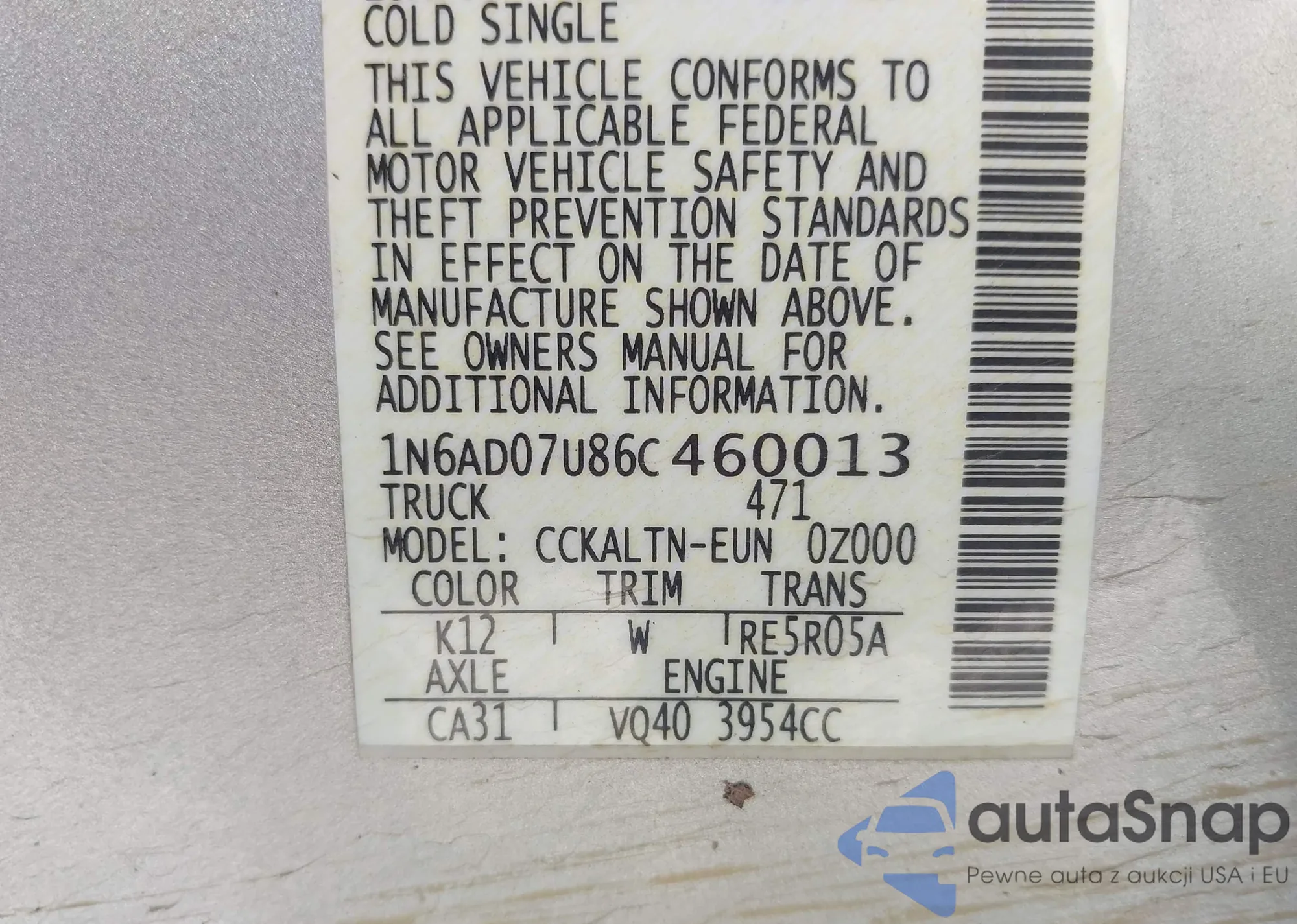 • VIN 1N6AD07U86C460013