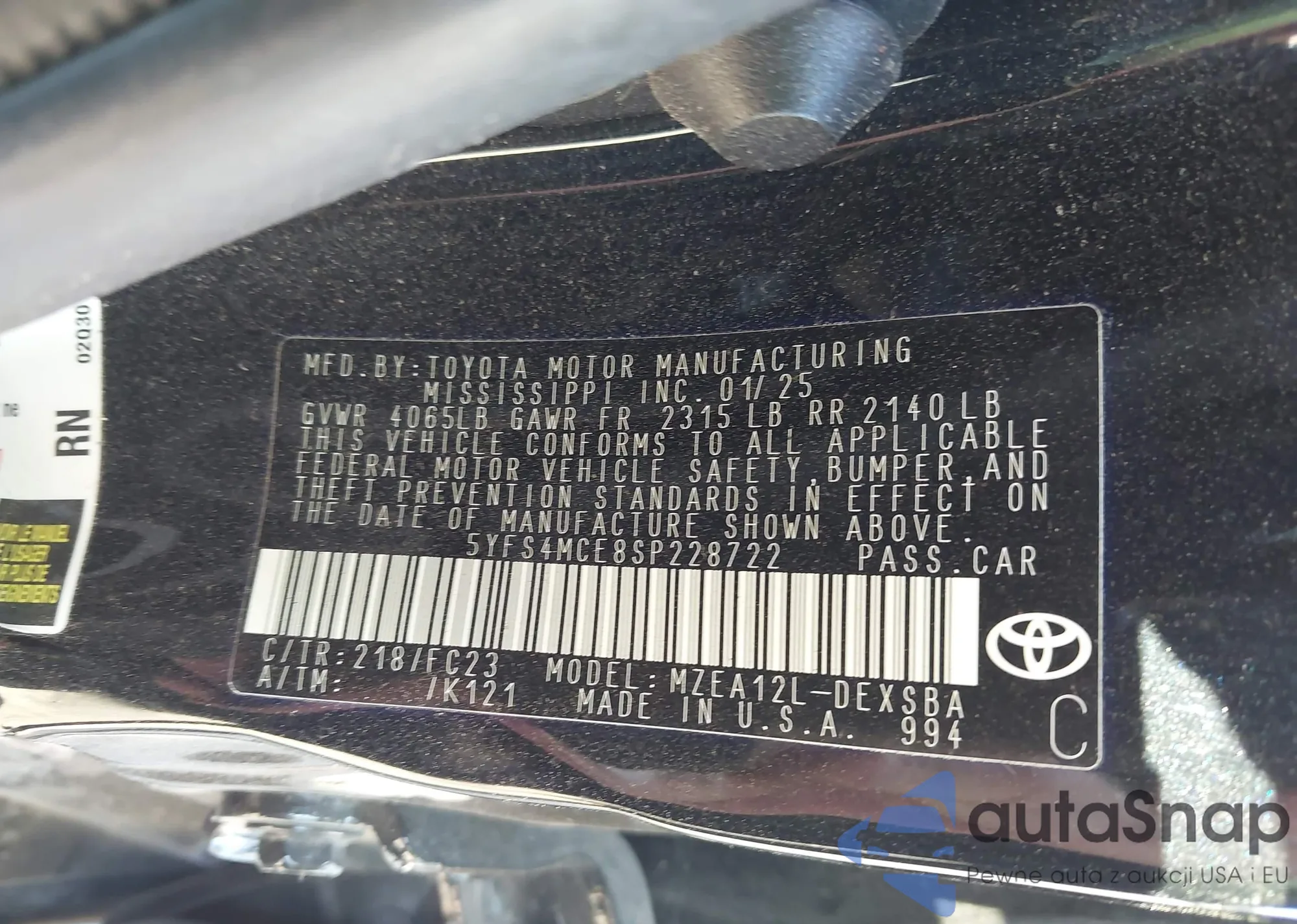 • VIN 5YFS4MCE8SP228722