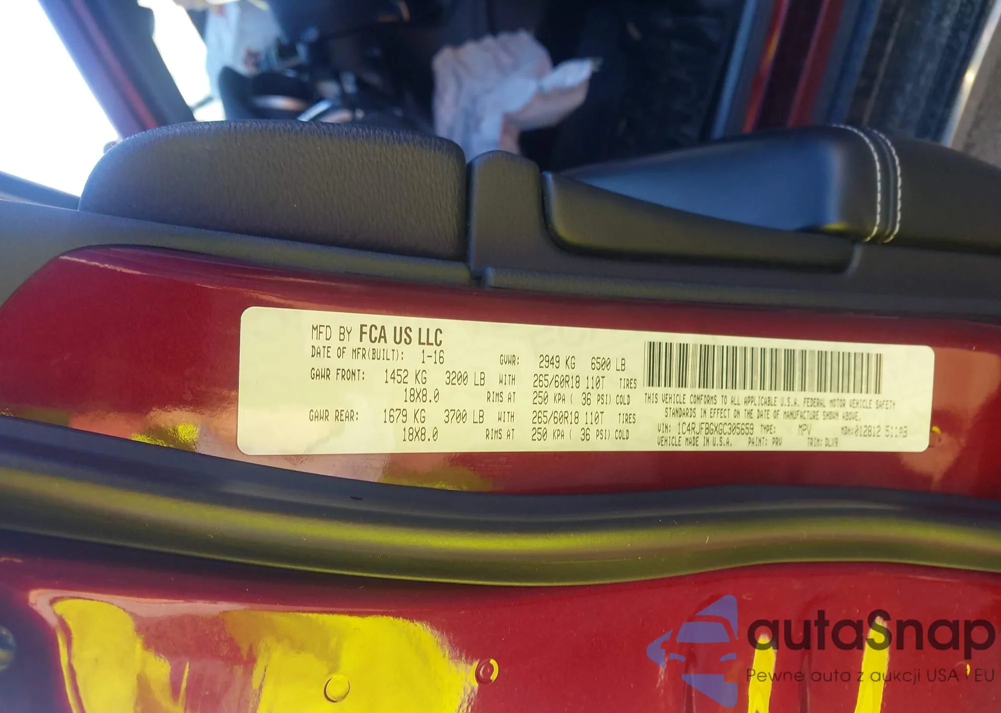 LOT: 43618346 VIN: 1C4RJFBGXGC305659