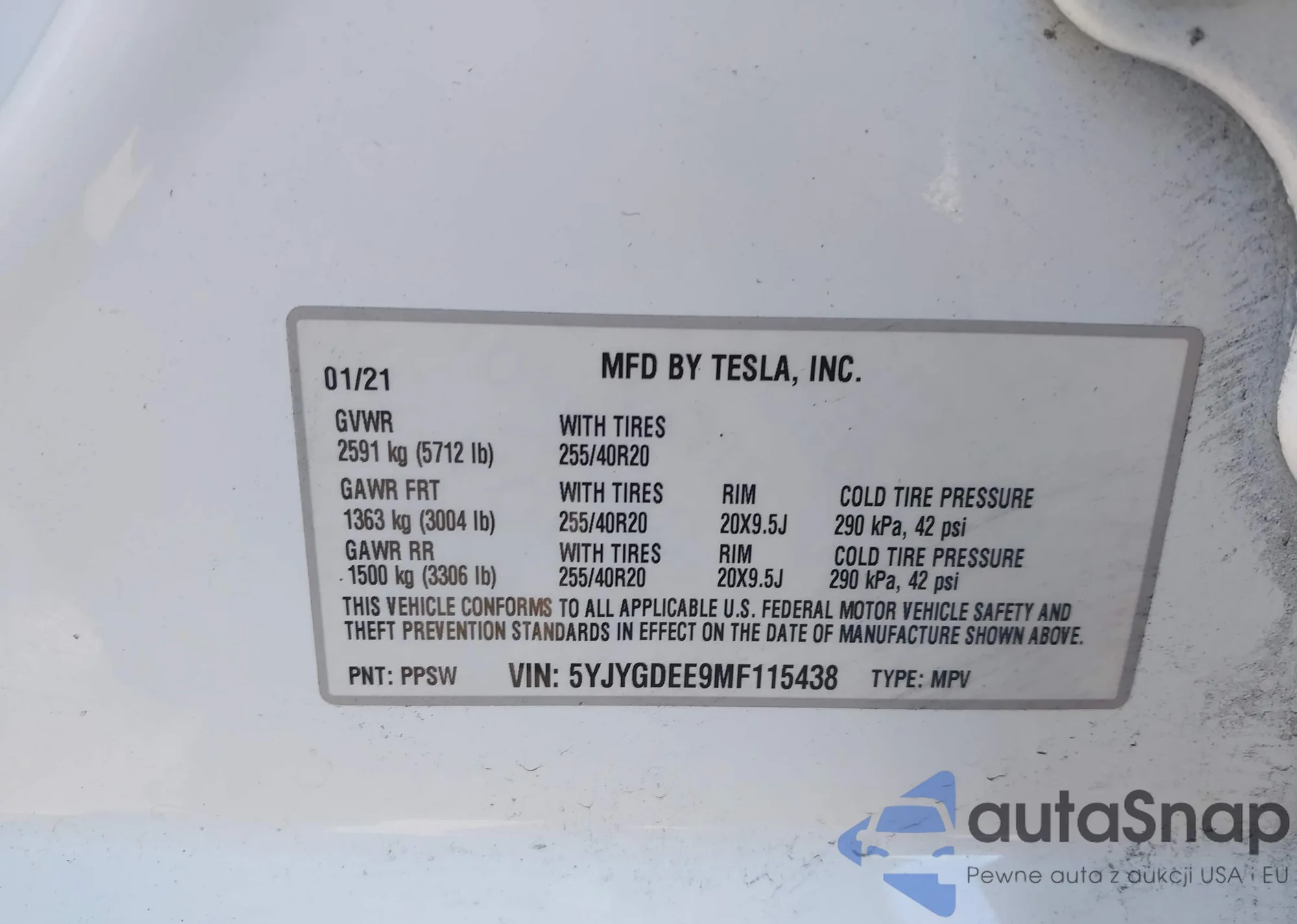LOT: 43619006 VIN: 5YJYGDEE9MF115438