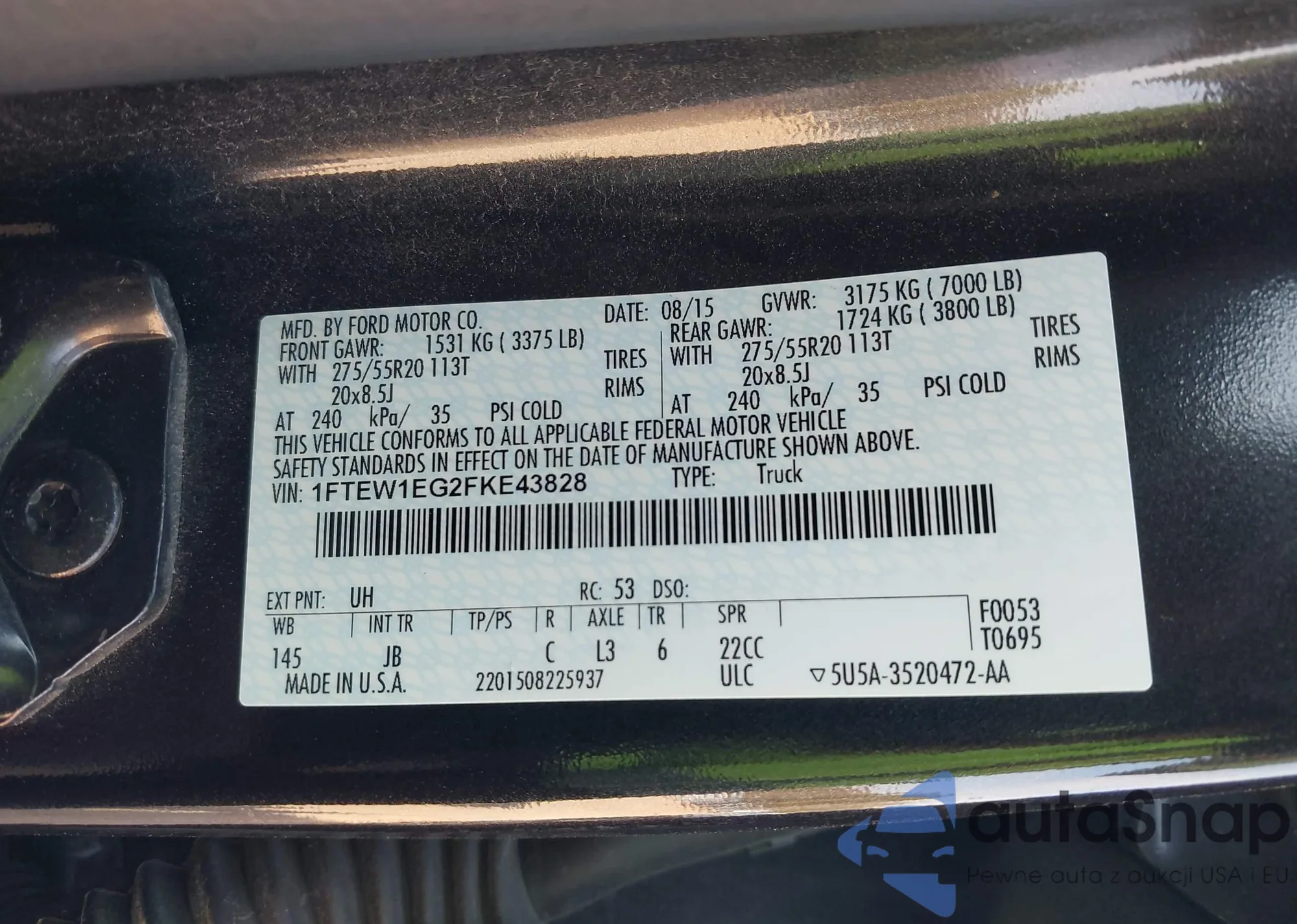LOT: 43627052 VIN: 1FTEW1EG2FKE43828