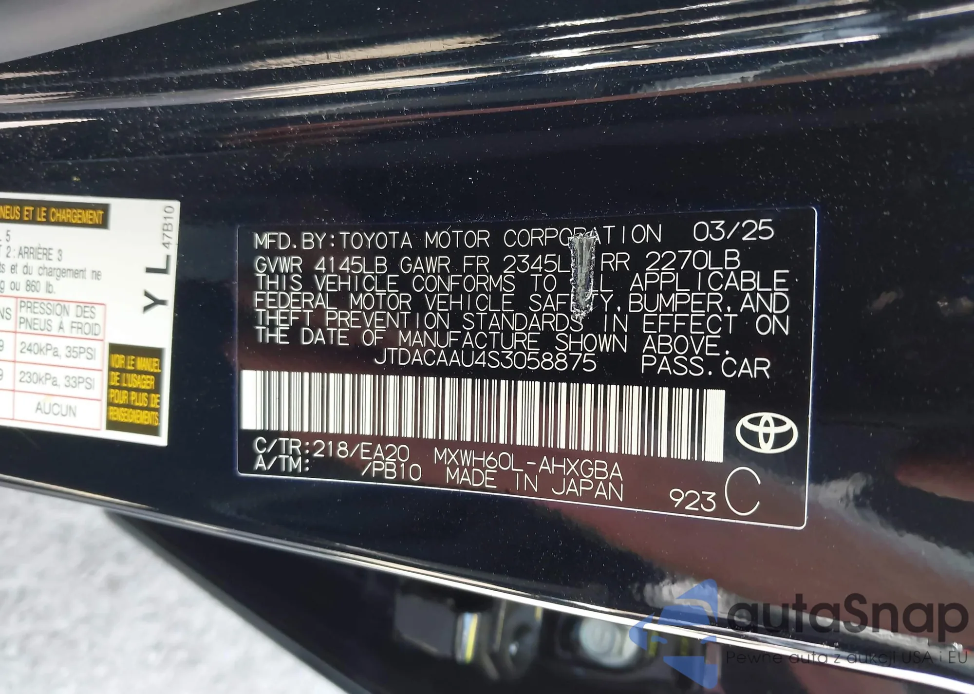 • VIN JTDACAAU4S3058875