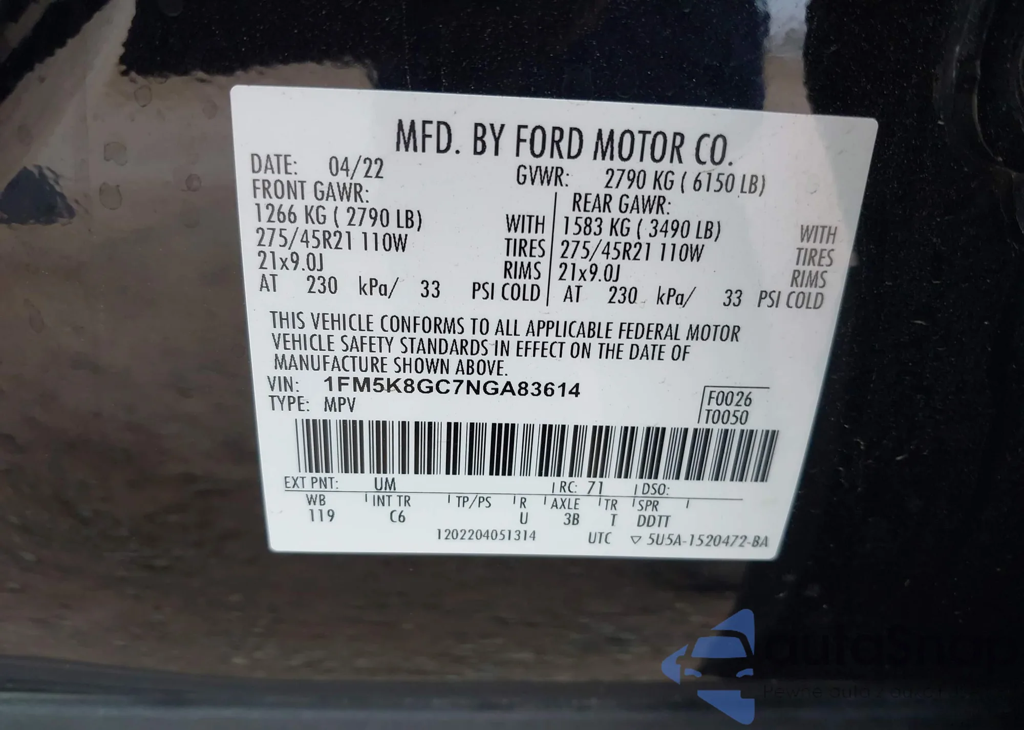 • VIN 1FM5K8GC7NGA83614