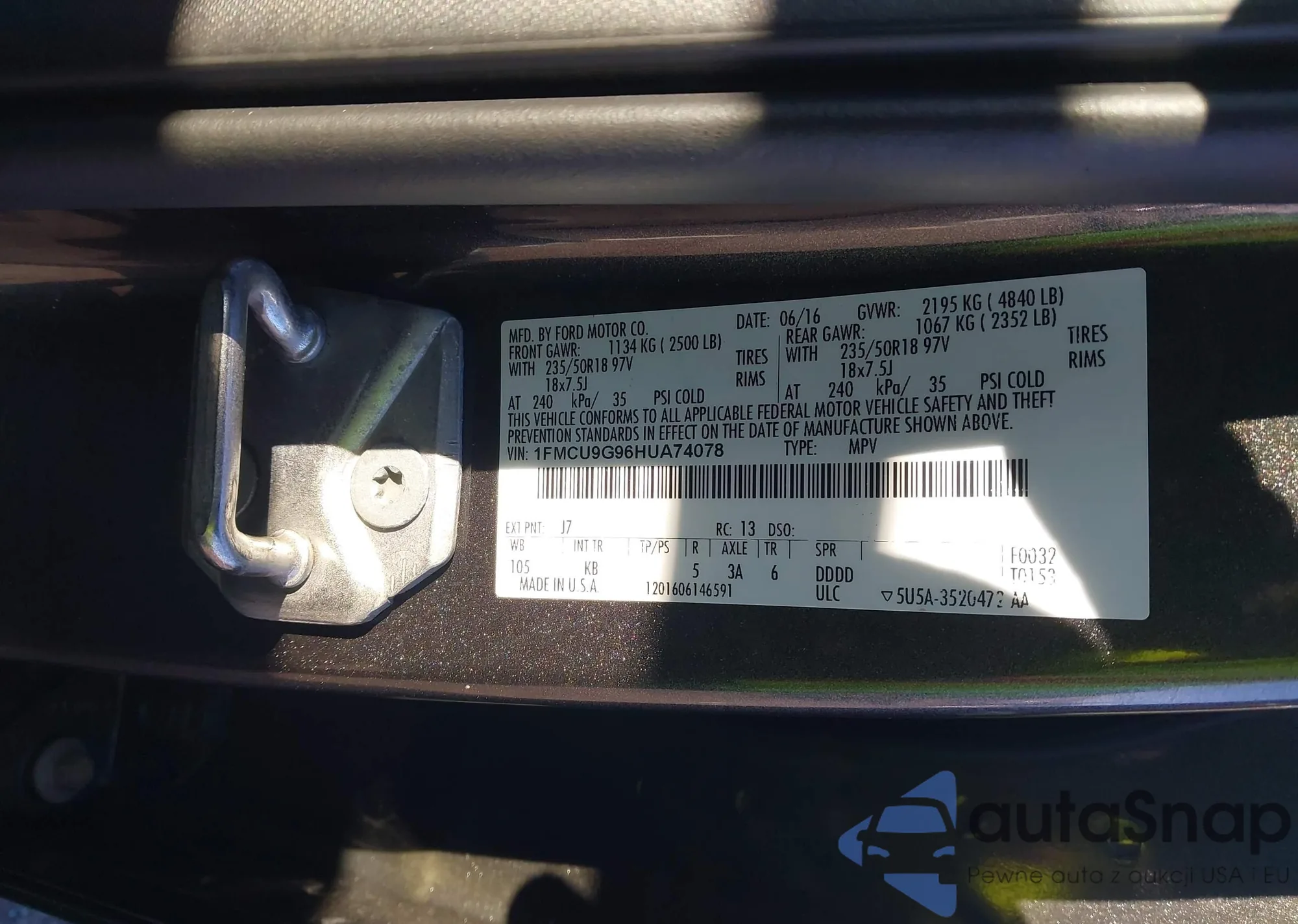 LOT: 43470744 VIN: 1FMCU9G96HUA74078