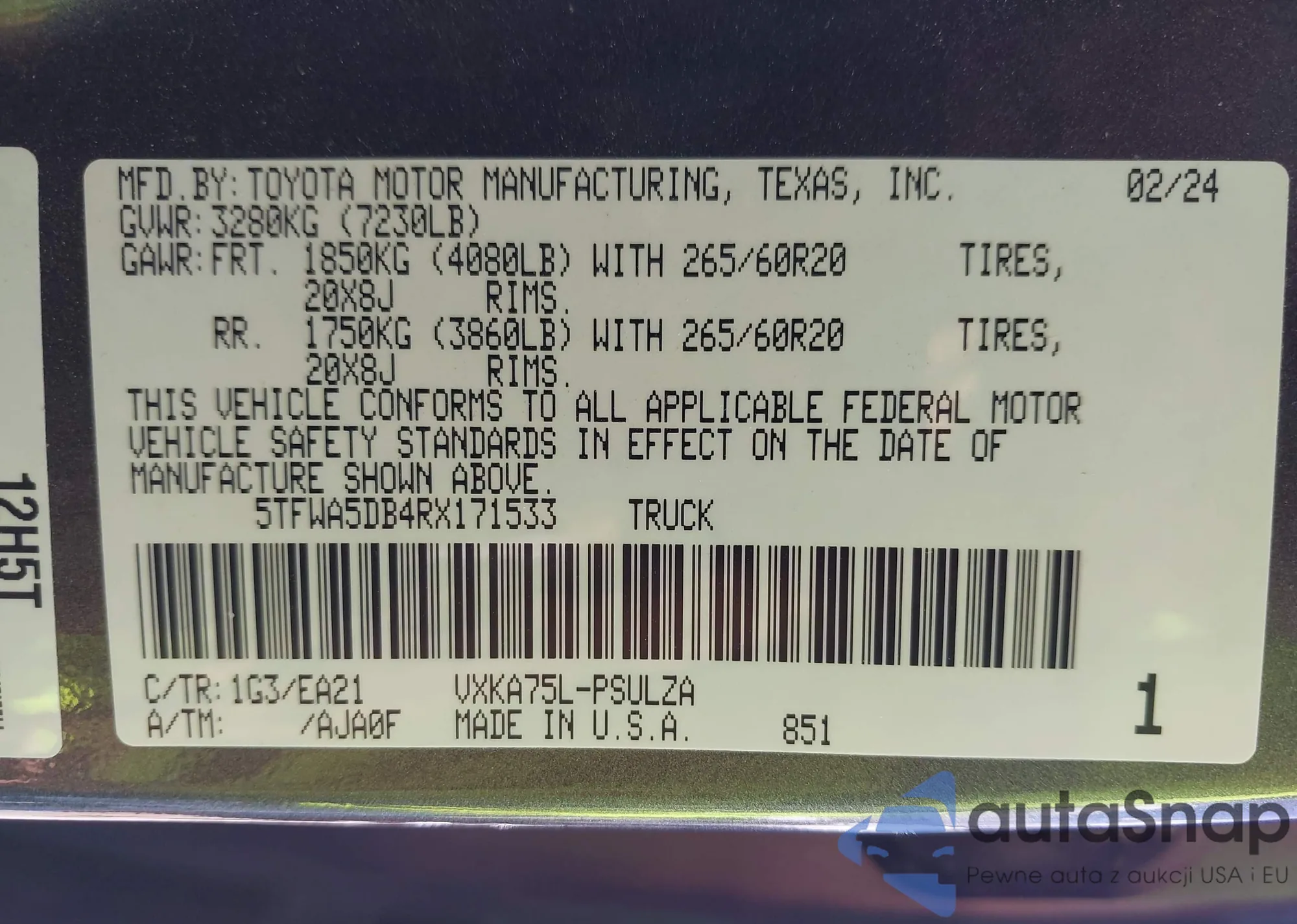 • VIN 5TFWA5DB4RX171533