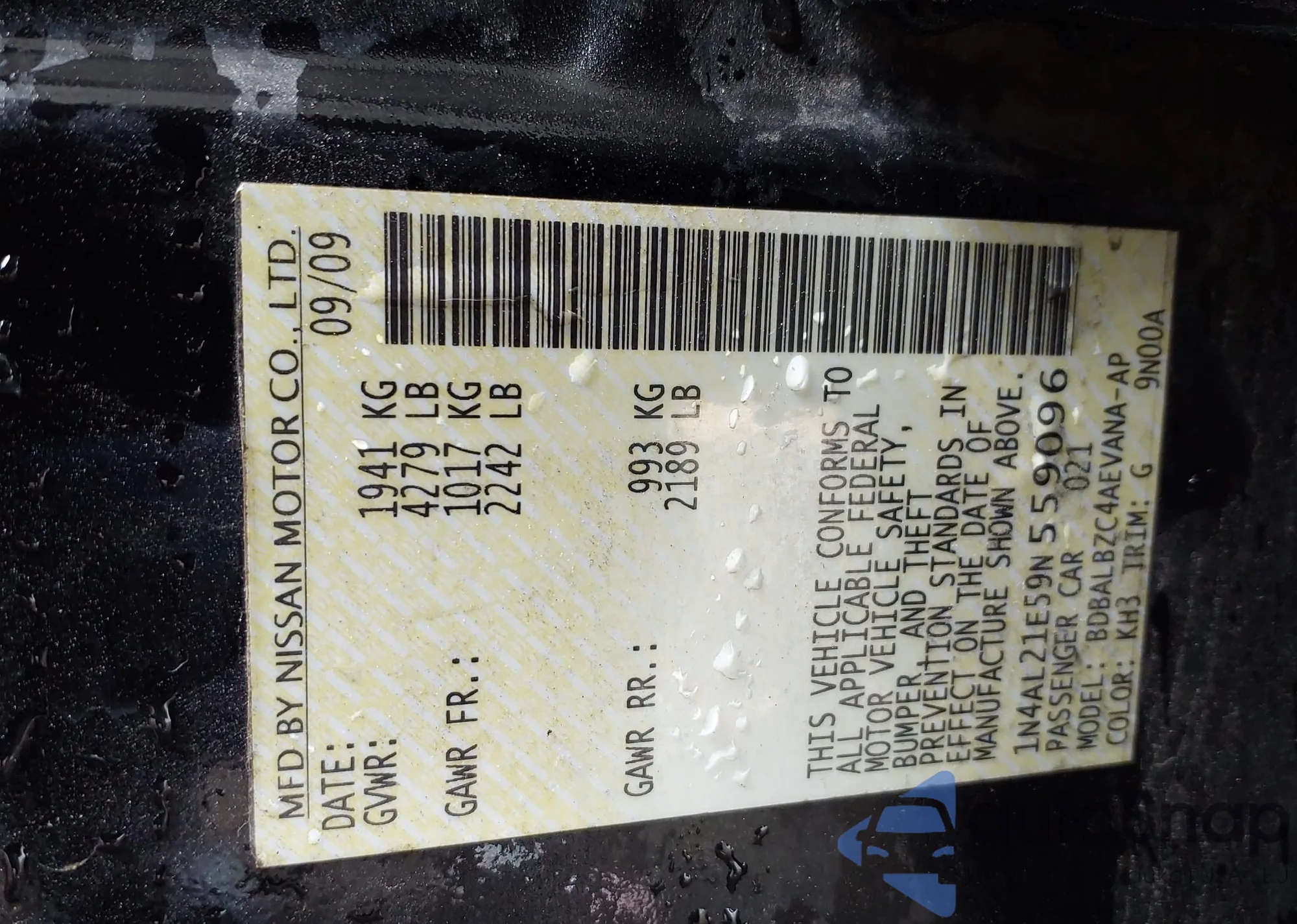 LOT: 42898103 VIN: 1N4AL21E59N559096