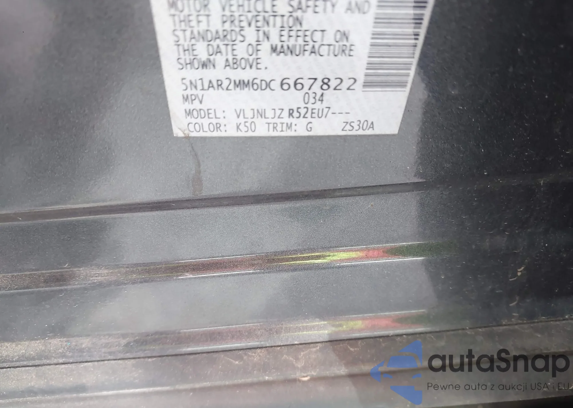 LOT: 43852525 VIN: JN8AF5MV9DT221837