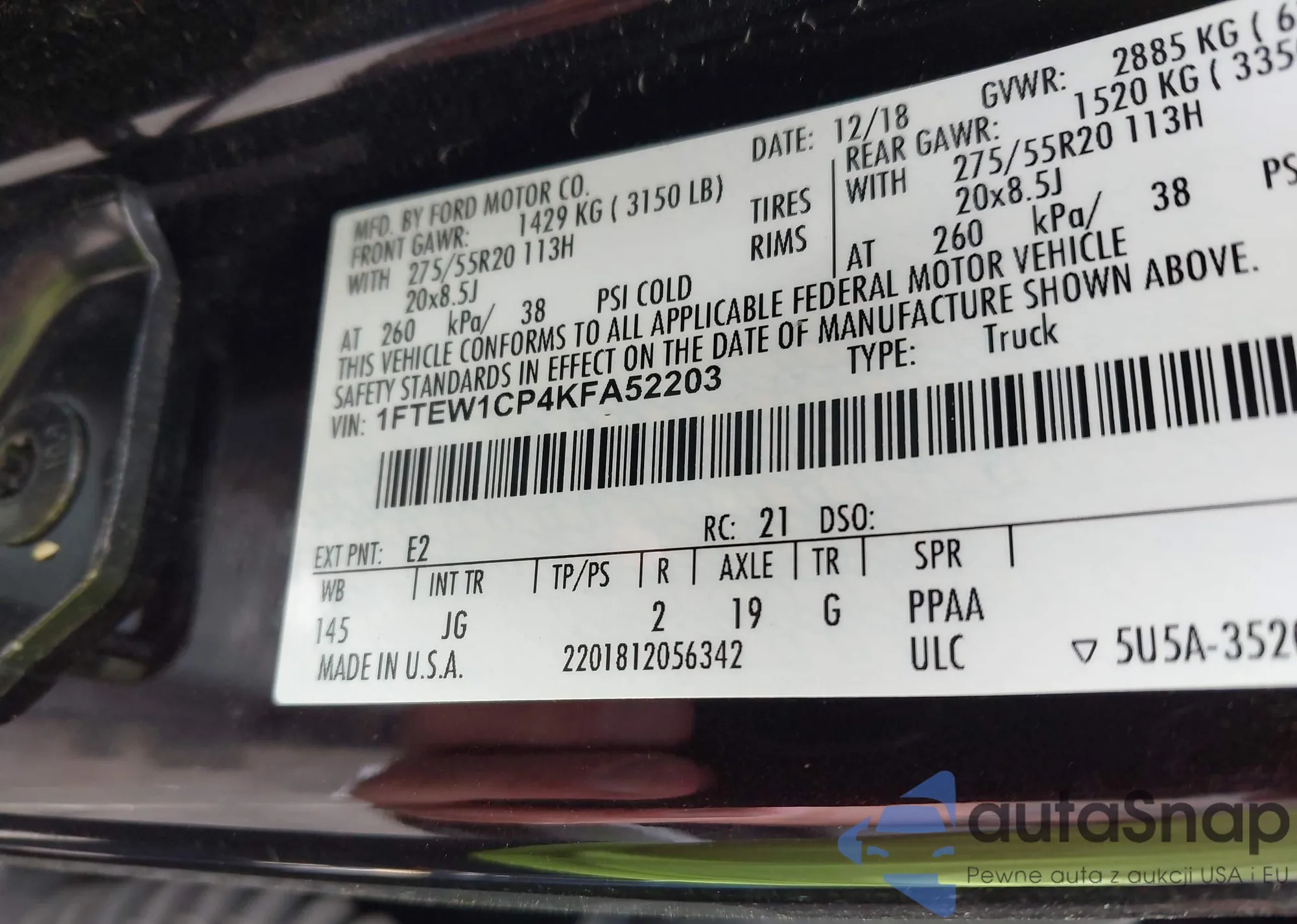 • VIN 4S4BSAFC8K3261285